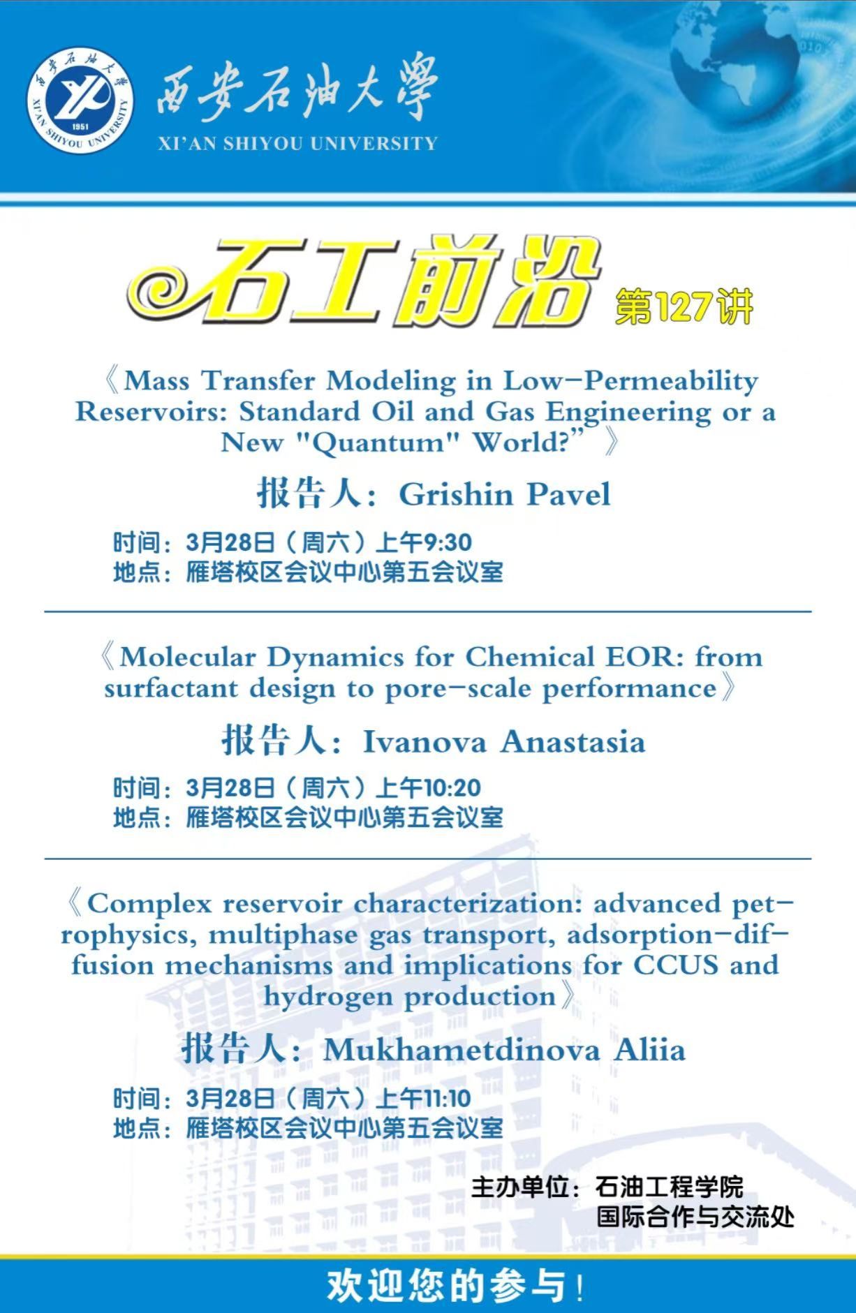 报告地点:雁塔校区会议中心第三会议室
