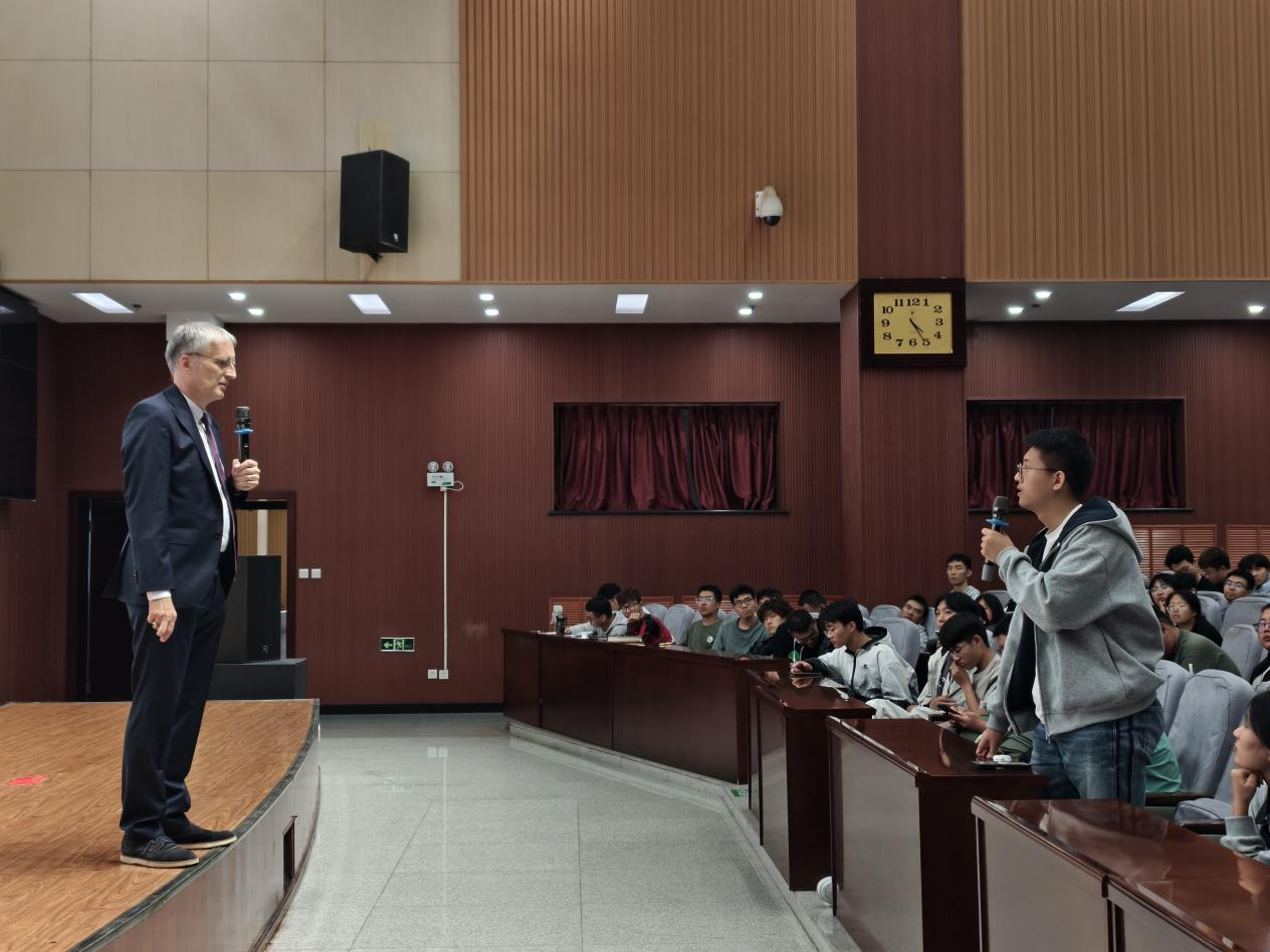 在最后的提问环节,现场气氛热烈非凡。师生围绕AI决策偏差防控、信息过载应对、AI与人类决策边界等问题踊跃发言。舍恩伯格教授通过分享个人研究经历,详细耐心地解答了师生的疑问。