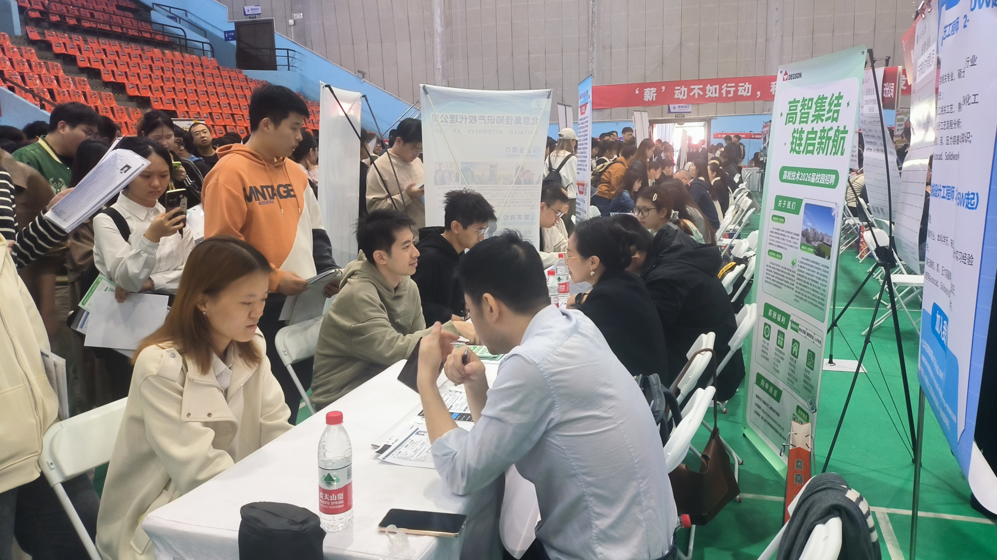 调研过程中,种宇宏逐一走访行业重点用人单位展位,与企业招聘负责人及校友亲切交谈。他详细询问企业招聘需求、岗位要求、薪资福利及行业发展情况,了解企业对我校毕业生专业能力、实践素养的综合评价,并向企业介绍我校学科建设、人才培养特色及2026届毕业生规模与专业分布情况。希望校企双方以人才供需对接为窗口,进一步深化校企合作,建立长期稳定的人才输送与联合培养机制,共同为行业发展培育优质人才。在与毕业生交流时,他关切询问同学们的求职意向、目标岗位及面试进展,倾听大家在求职过程中遇到的困惑与需求。他叮嘱同学们要结合自身专业优势与职业规划,理性选择岗位,主动与用人单位沟通,同时鼓励广大毕业生到西部去、到基层去,到祖国最需要的地方建功立业,强调要树立“先就业、再择业”的正确就业观,积极把握就业机遇,在统筹社会价值的过程中实现个人价值。