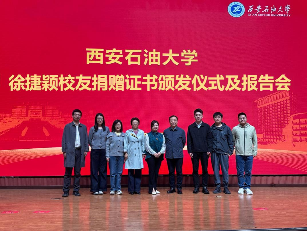 10月11日下午,徐捷颖校友捐赠证书颁发仪式暨报告会在鄠邑校区弘石学术报告厅举行。副校长种宇宏,“颖享力”创始人、西安石油大学2001届校友徐捷颖,党委学生工作部部长王亮及各院(系)师生代表共400余人参加了本次报告会。会议由党委学生工作部副部长毕轶慧主持。