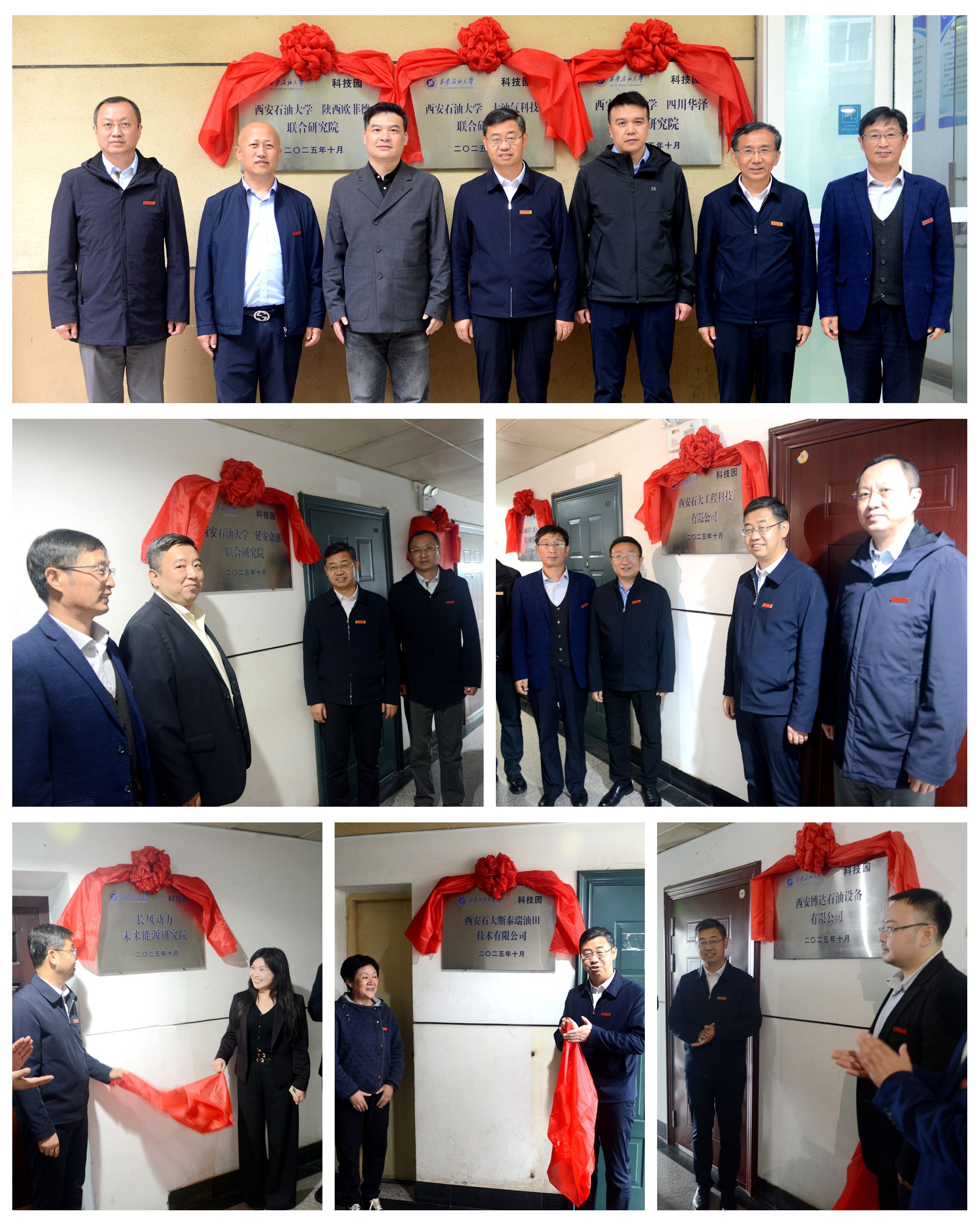 仪式的最后一个环节,大学科技园揭牌仪式在东方石油楼举行,王进富、苏文甫、张荣军共同为“西安石油大学科技园”揭牌,并与各企业负责人一起为各入驻单位揭牌。