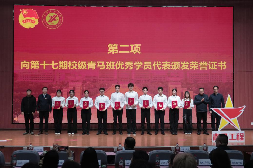 开班仪式上,种宇宏为第十八期青马班学员代表授旗,校团委负责人宣读《关于表彰西安石油大学第十七期校级青马班优秀学员的决定》,各单位负责人为第十七期校级青马班优秀学员代表颁发荣誉证书。校团委第二课堂运营中心张洁清、第28期研究生支教团成员虞茗荃分别作为第十七期校级青马班优秀学员代表和第十八期校级青马班学员代表进行了交流发言。