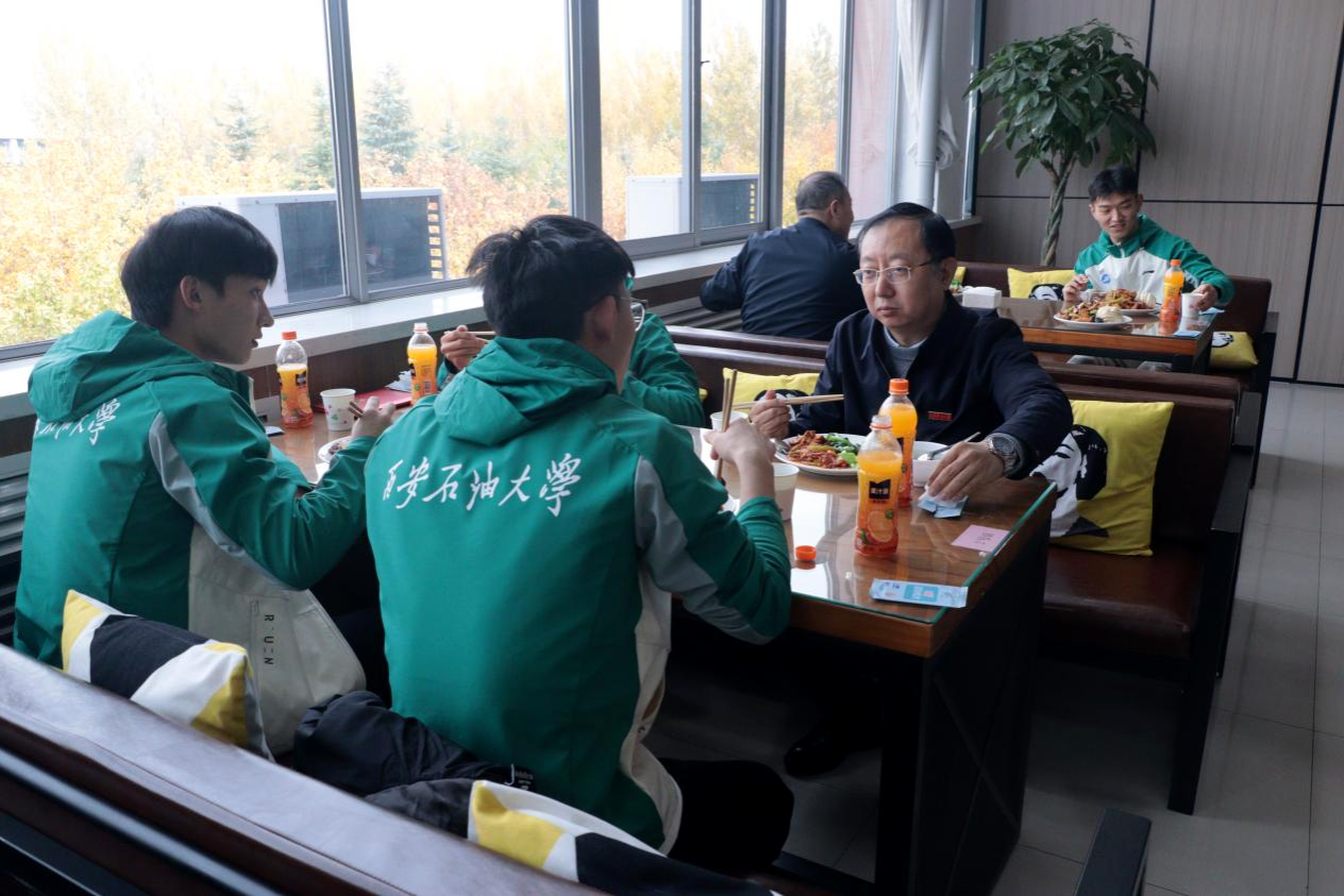 仪式结束后,校领导以及各相关职能部门和学院负责人与运动员代表共同举行了“师生午餐会”,并向同学们赠送了纪念品。餐桌上,与会各位老师与学生们亲切交流,询问运动训练和在校生活情况,积极关心和回应同学们近期关注和遇到的各类问题,在学习、就业、生涯规划等方面给予同学们很多建议。大家纷纷表示,校领导及老师们的关怀让他们倍感温暖,未来将以更优异的成绩回报母校。