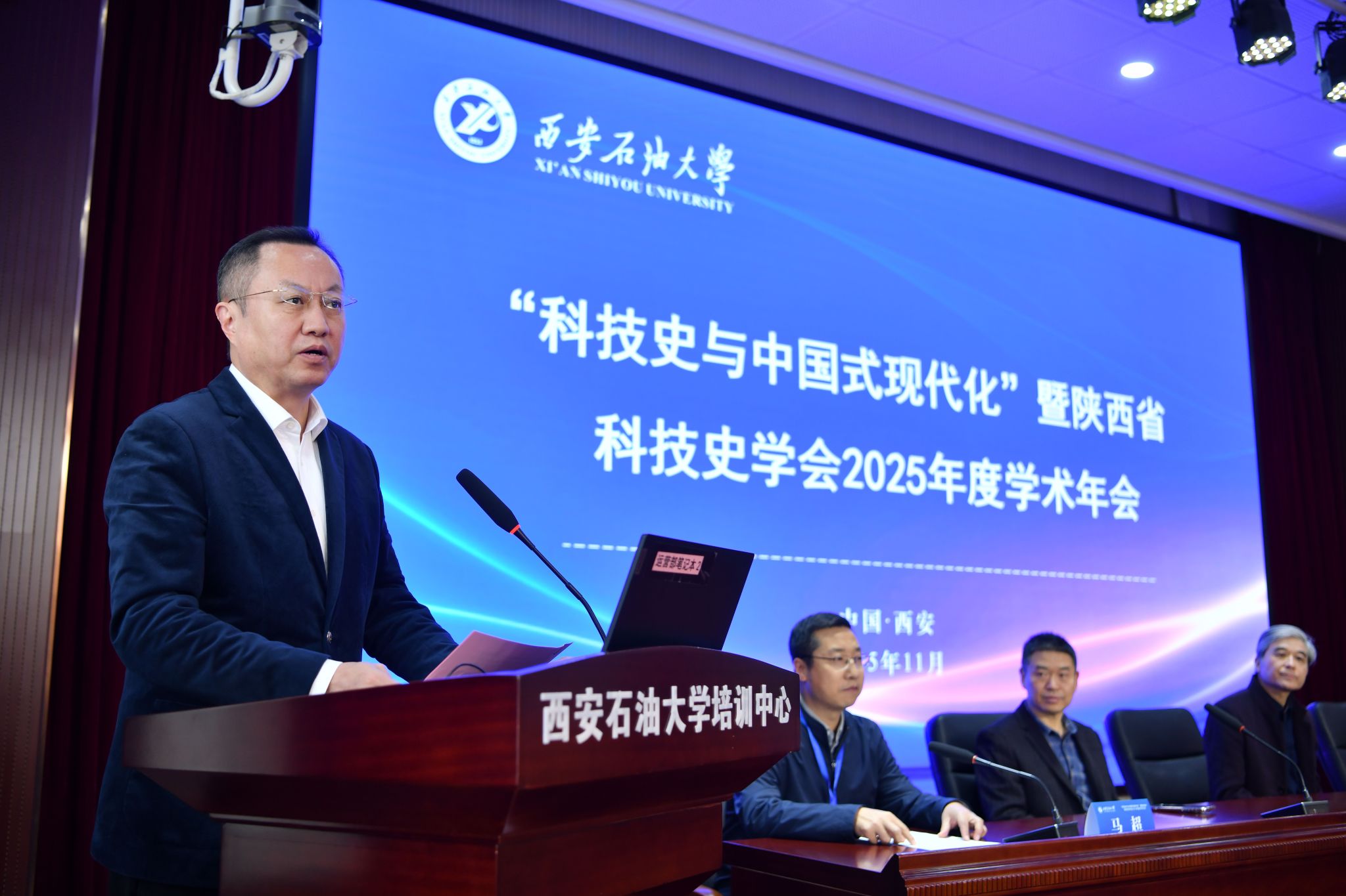 科技薪火,永续传承;创新驱动,引领未来。从中国古代的四大发明到以人工智能、量子计算为代表的第四次工业革命,科技史承载了人类思想与文明的演进脉络,推动科技创新浪潮奔涌向前。11月16日,恰逢陕西省科技史学会成立40周年之际,由陕西省科技史学会主办,我校档案馆承办,西北大学科学史高等研究院和我校科研处、理学院共同协办的“科技史与中国式现代化”暨陕西省科技史学会2025年度学术年会在我校明德校区开幕。