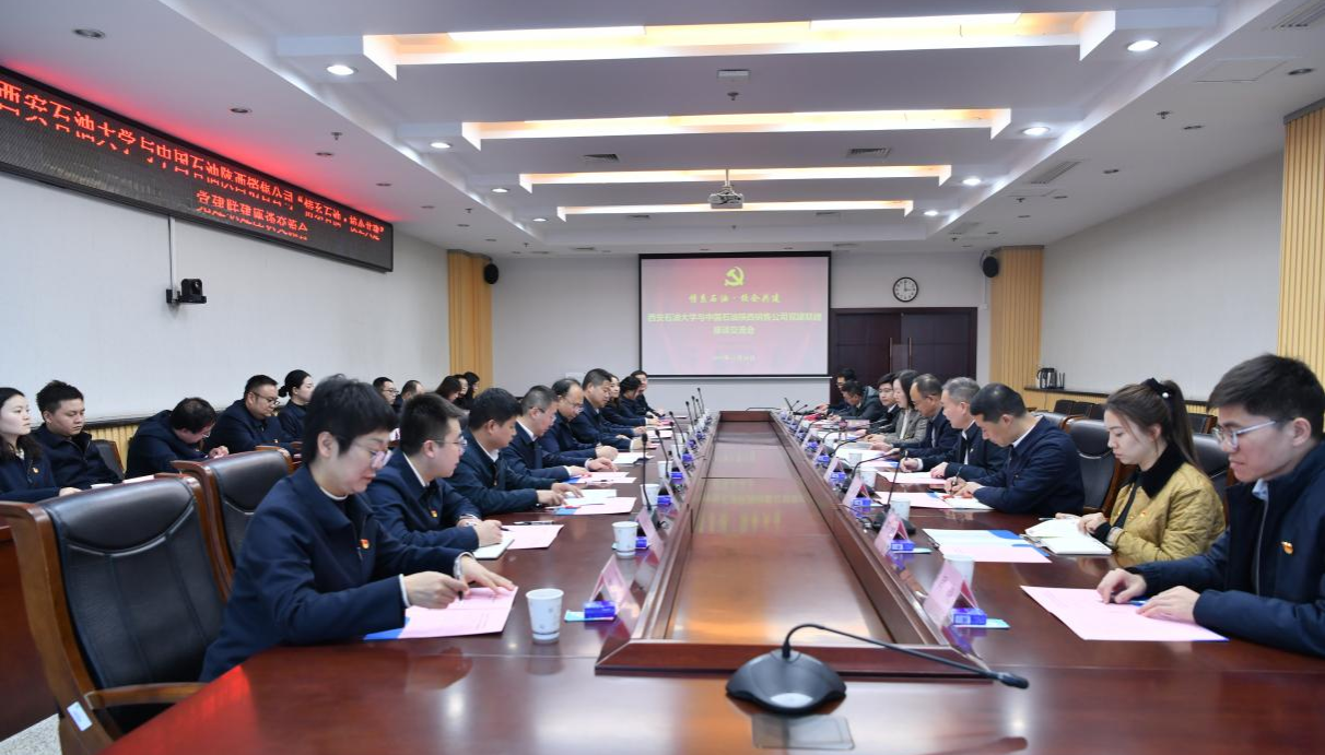 11月28日下午,我校与中国石油陕西销售公司共同开展“情系石油·校企共建”党建联建活动。陕西销售公司副总经理杨健、焦群朝,我校副校长赵健,中国石油陕西销售公司办公室系统、非油分公司以及我校党委办公室(校长办公室)、资产经营公司相关负责同志参加活动。