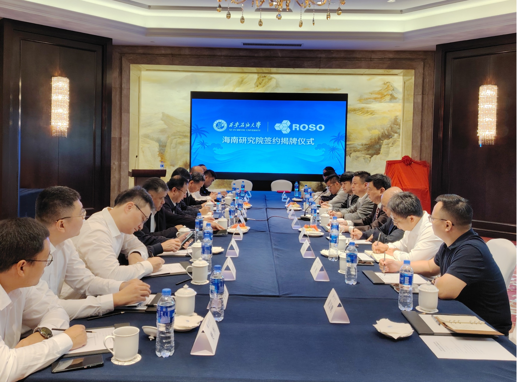 会上,张木、聂鹏分别代表校企双方签署了共建海南研究院协议,王进富与唐海青共同为海南研究院揭牌。与会人员还围绕海南研究院发展规划、油气产业发展、科研攻关、高层次人才建设、人才培养、国际合作、人员入驻等议题进行了深入交流讨论。