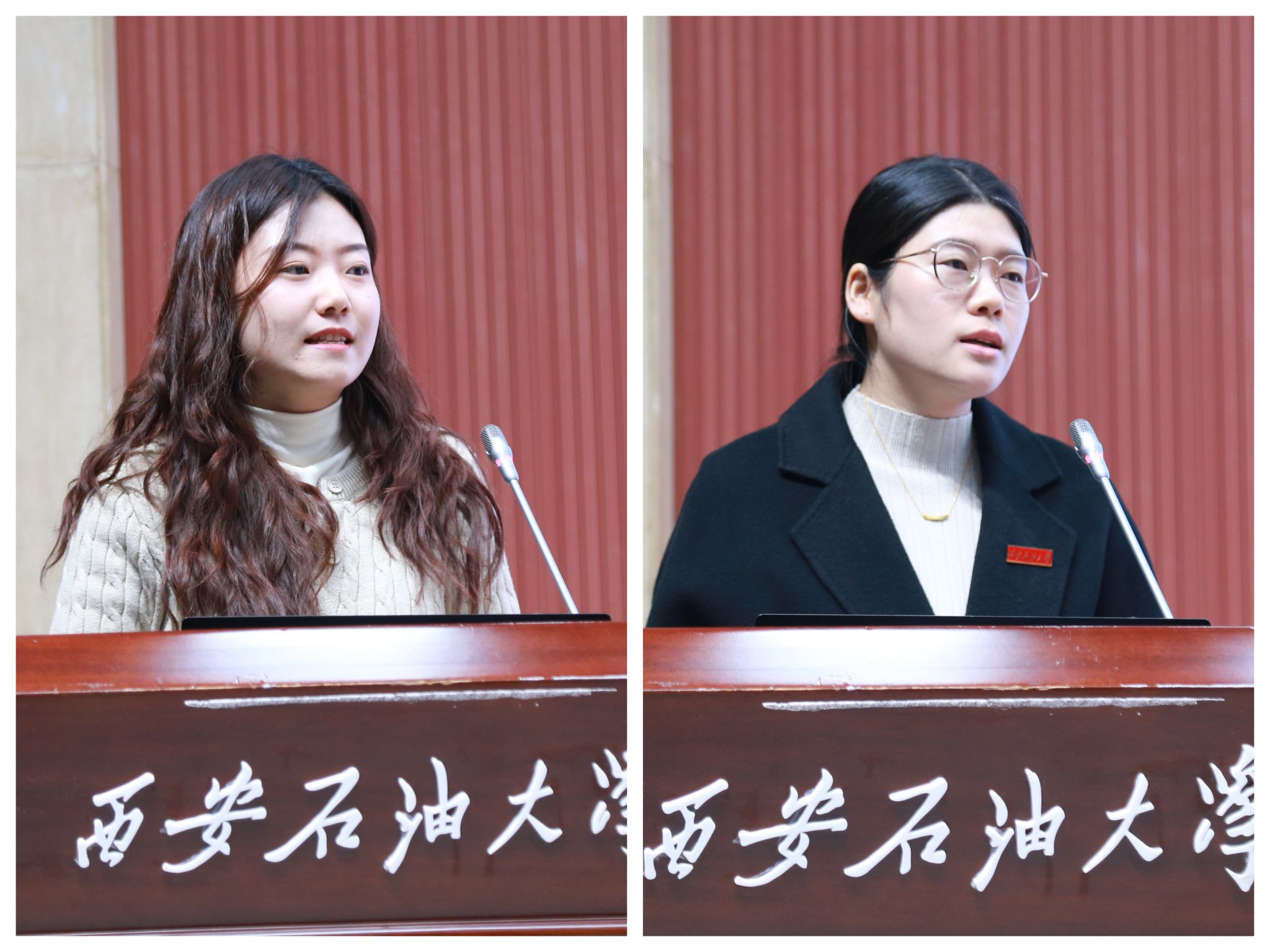 班主任代表登台分享育人经验。地质2501班班主任娄瑞以“新生班主任工作心得与建议:引导—连接—成长”为题,系统阐述了新生班主任工作的核心路径:以“引导” 为学生锚定成长方向,以“连接”搭建信任互通的师生与同伴联结,最终落脚于“成长”——通过唤醒学生内在动力,实现从集体适应到自主发展的飞跃。电信2402班班主任杨玲以“‘芯’火相传,‘信’路引航——工科班级的精细化管理与价值引领”为题,从班主任角色定位、班级管理与建设、实践创新与成效三个维度,分享了自己作为一名“土生土长”西石大人的成长经历与工作思考。