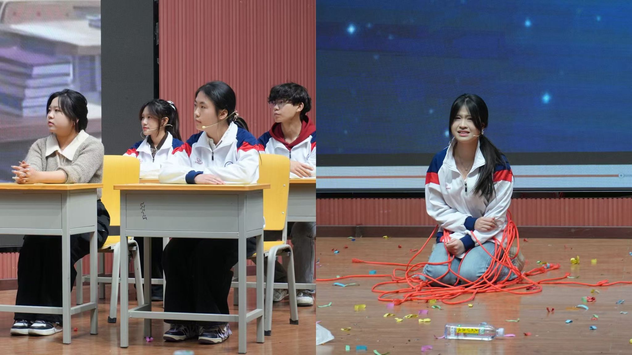 本次比赛共有16个学院17支队伍报名,经过前期的初赛后共有8支学院代表队进入决赛。八部作品以青春为底色,将大学生成长中的困惑、温暖与蜕变搬上舞台,在欢笑与动容的交织中,精彩得勾勒出当代青年的心灵图谱。《心之所向,素履以往》聚焦大学生遇学业就业压力陷入内耗的热点问题,演绎以情绪为核心,不断闯关,解开心结,逐步自我接纳与成长的历程。《坚守与诱祸》则围绕大学生因保研问题误入歧途走偏方向,在辅导员和同学的帮助下重拾信心,努力前进的故事。《优秀标签的“诅咒”》以大学生面临的“完美主义”心理枷锁为引,展示了林薇这朵“优秀玫瑰”如何挣脱刻板标签,寻回真实自我。《金缮》关注当代大学生生活中的烦恼重重,以金缮喻人生,传递着青春总有磕绊,裂痕也并非缺憾的信条,金缮的哲思里,藏着关于成长的答案,直面青春挫折,伤痕终将化作成长金印。《“纸枷”》集中于思考随着当下各种AI软件兴起,大学生在学术规范与论文写作中,如何正确使用AI软件,回应社会所关心的问题。《非我之我》通过性格迥异的两位新生互换处事方式,因不同碰撞,又因“成为彼此”而磨合,最终寻得了成长的平衡点。《灯火重明》关注大学生“讨好型”问题,以灯火喻本心,直面期待枷锁,将疲惫化作拥抱自我的温暖光痕。岩层断层藏着地球密码,人心隔阂藏着蜕变契机,《断层上的桥梁》讲述了主角因学习问题被孤立,最终凭借自身努力和朋友帮助成功化解难题并取得了进步的故事。