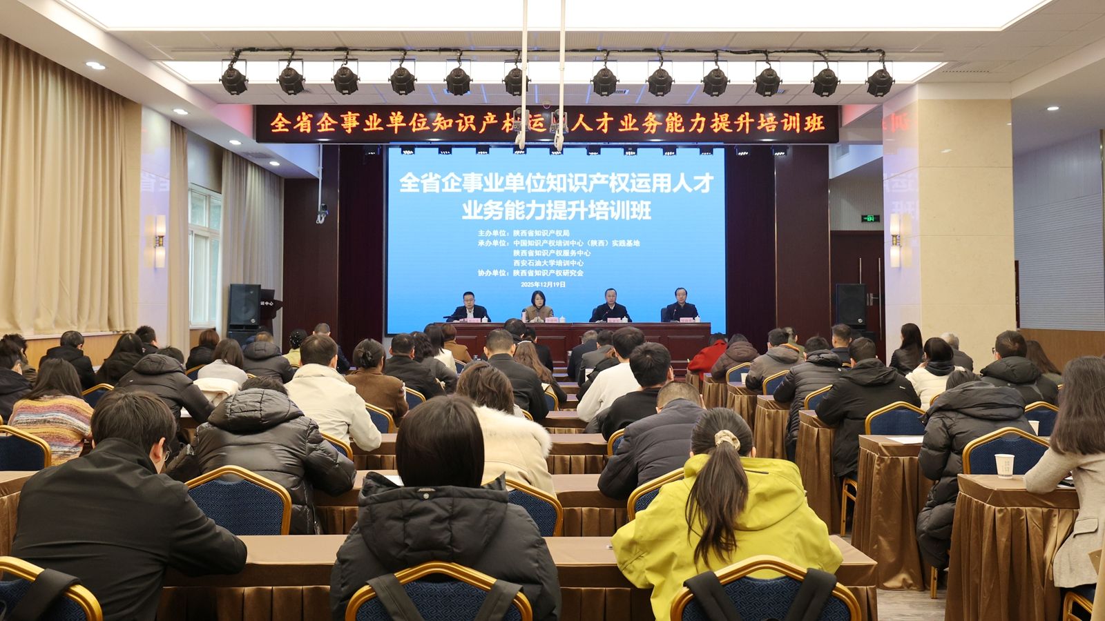 12月19日上午,全省企事业单位知识产权运用人才业务能力提升培训班在我校明德校区顺利开班。陕西省知识产权局党组成员李晓鸣,我校党委委员、副校长张荣军,继续教育学院(培训中心)院长(主任)林红先出席开班式。来自陕西省各市(区)知识产权局管理部门、高校院所以及企业负责知识产权转化工作的80余名工作人员参加培训。仪式由陕西省知识产权服务中心副主任贺骁勇主持。