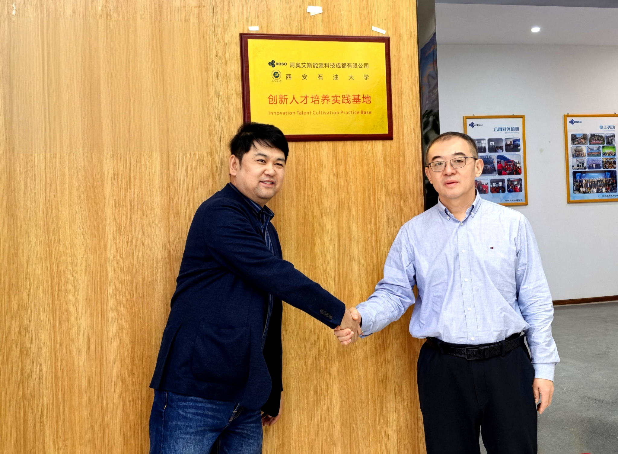 在阿奥艾斯能源科技成都有限公司,常江与公司总经理聂鹏共同为校企人才创新培养实践基地揭牌。揭牌仪式由公司副总经理(我校机械电子工程专业2001届校友)王启中主持。常江对基地成功揭牌表示热烈祝贺,向公司长期以来给予学校发展的关心与支持致以诚挚感谢。他指出,此次校企人才创新培养实践基地的揭牌,既是双方此前共建海南研究院、深化合作成果的升华与延续,更是践行立德树人使命、推进教育改革创新的重要载体,也是服务国家战略、赋能能源产业高质量发展的关键举措。