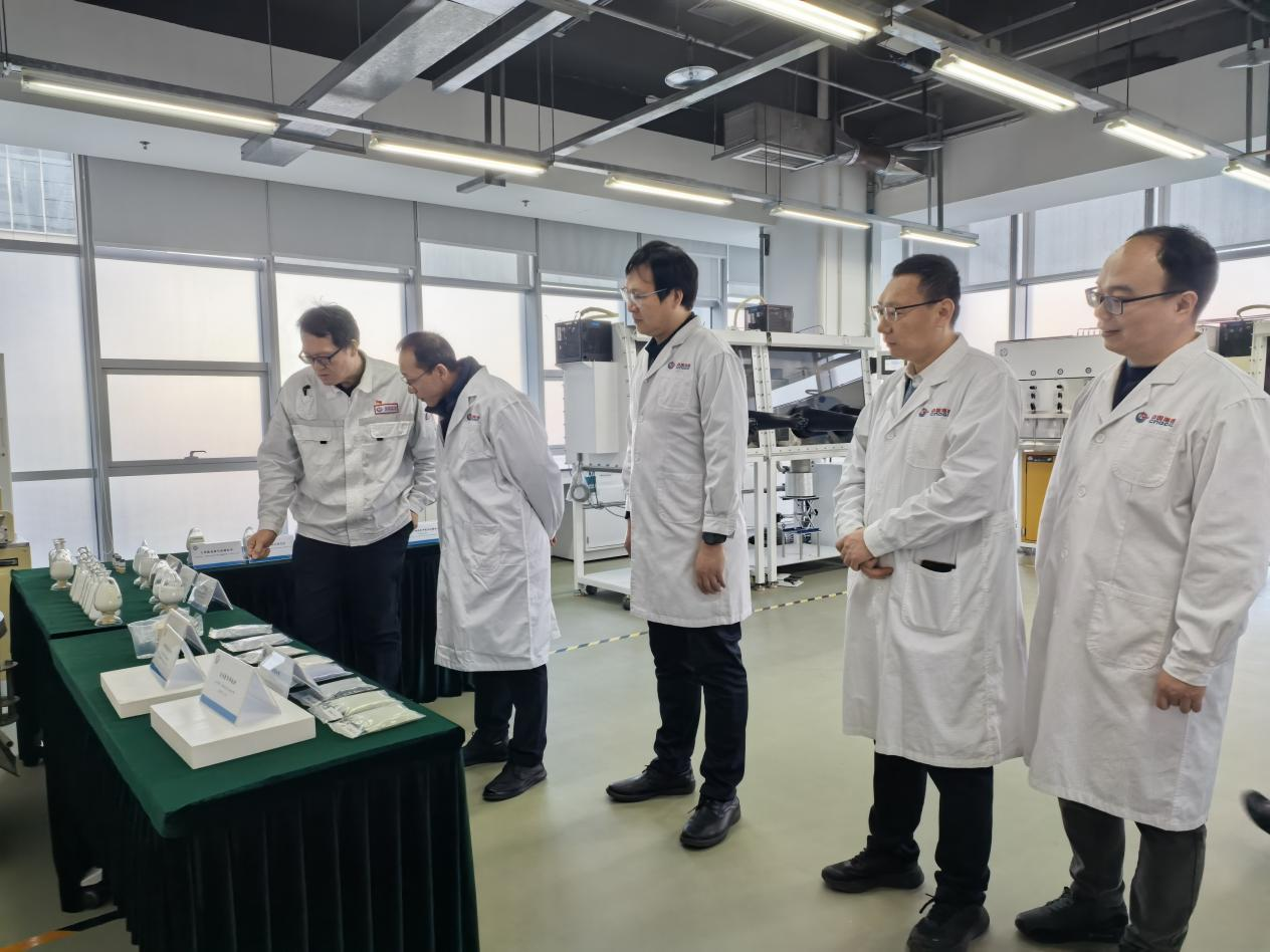 会前,在郭子芳的陪同下,张君涛一行参观了北化院在合成树脂、合成橡胶、合成纤维以及高端医用化工新材料等领域的特色技术与产业成果展。