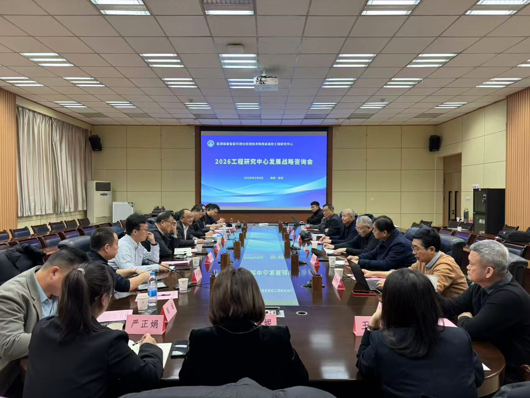 2月6日下午,能源装备智能可视化检测技术陕西省高校工程研究中心发展战略咨询会在我校雁塔校区会议中心第一会议室召开。副校长赵健出席会议并致辞。工程中心技术委员会主任雷群教授,工程中心技术委员会部分专家委员,工程中心主任委员会主要负责人,科技处、教务处、电子工程学院等单位主要负责人出席会议,会议由电子工程学院党委书记潘娜主持。
