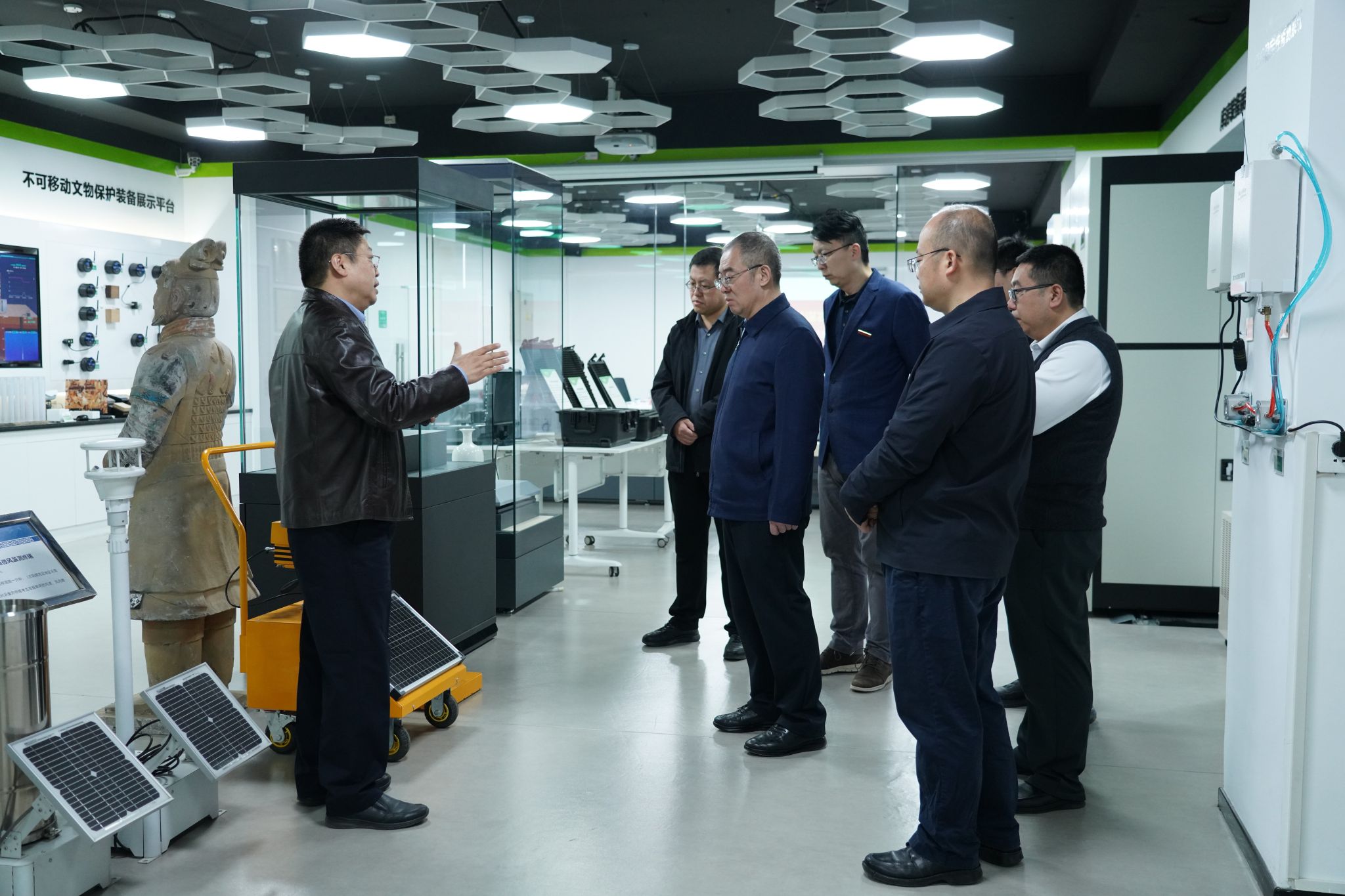 交流座谈前,常江一行参观了西安元智系统技术有限责任公司展厅,详细了解了企业在文化遗产保护、文物监测、数字化传承等领域的技术成果和应用案例。