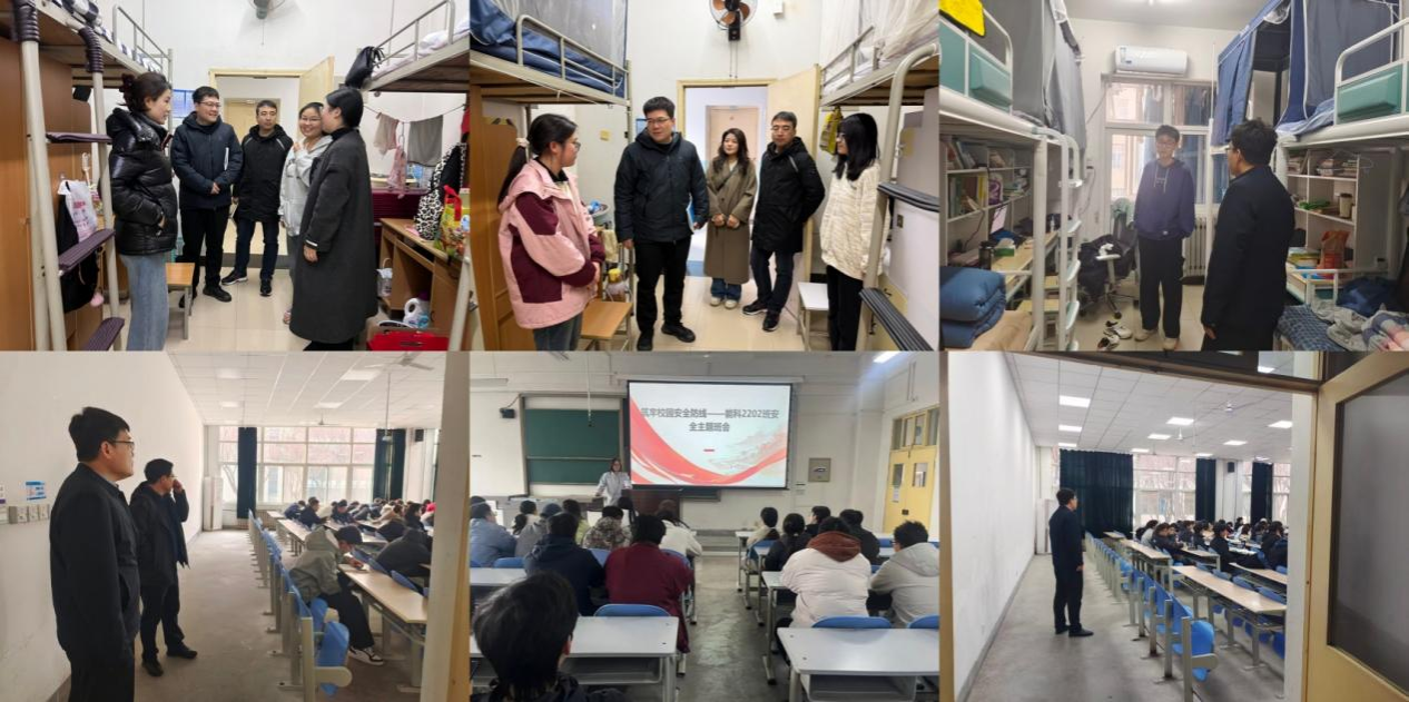 理学院于3月2日至5日开展全覆盖走访检查工作,党委书记席利哲、院长折延宏、党委副书记杨富民带领全体辅导员和部分班主任分批次深入学生宿舍,了解返校适应和学习生活需求,围绕专业认知、职业规划交流座谈,收集意见建议并现场解答困惑。院领导带队深入课堂,察学情、访状态,实现首周全部课程检查全覆盖。学院还以班会和年级大会形式为全体本科生开展“开学第一课”,引导学生端正学习态度、加强学风建设,重点强调预防电信诈骗、加强网络文明教育,守护校园安全稳定。
