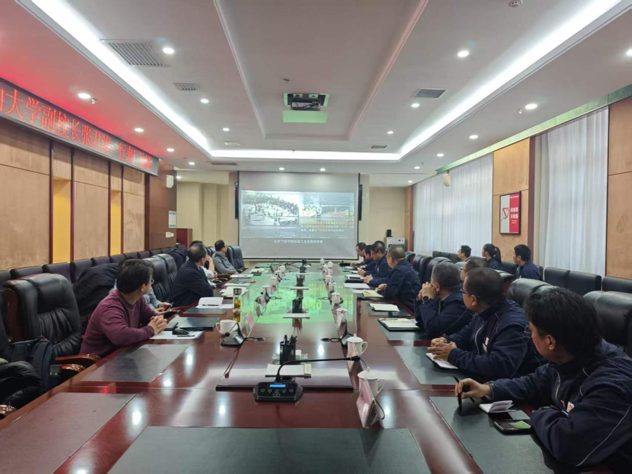 张浩文对张君涛一行到访表示欢迎,感谢学校输送人才与技术支持。他指出,双方肩负国家能源安全使命,发展同频共振。会上,他介绍了炼化公司的发展布局,重点讲解拟新建炼化一体化项目进展,阐述发展规划、数字化转型及人才需求,表达在定制化培养、基地共建、科研攻关等方面深化合作的意愿。双方深入探讨,达成多项共识。