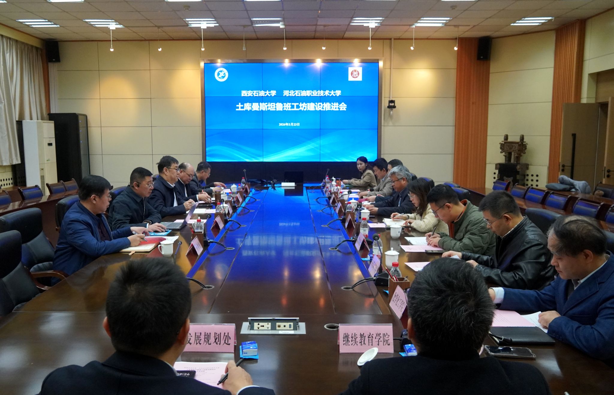 3月23日上午,河北石油职业技术大学副校长马显才一行到访我校,双方在雁塔校区会议中心第二会议室举行土库曼斯坦鲁班工坊建设推进会。副校长张骁勇主持会议。