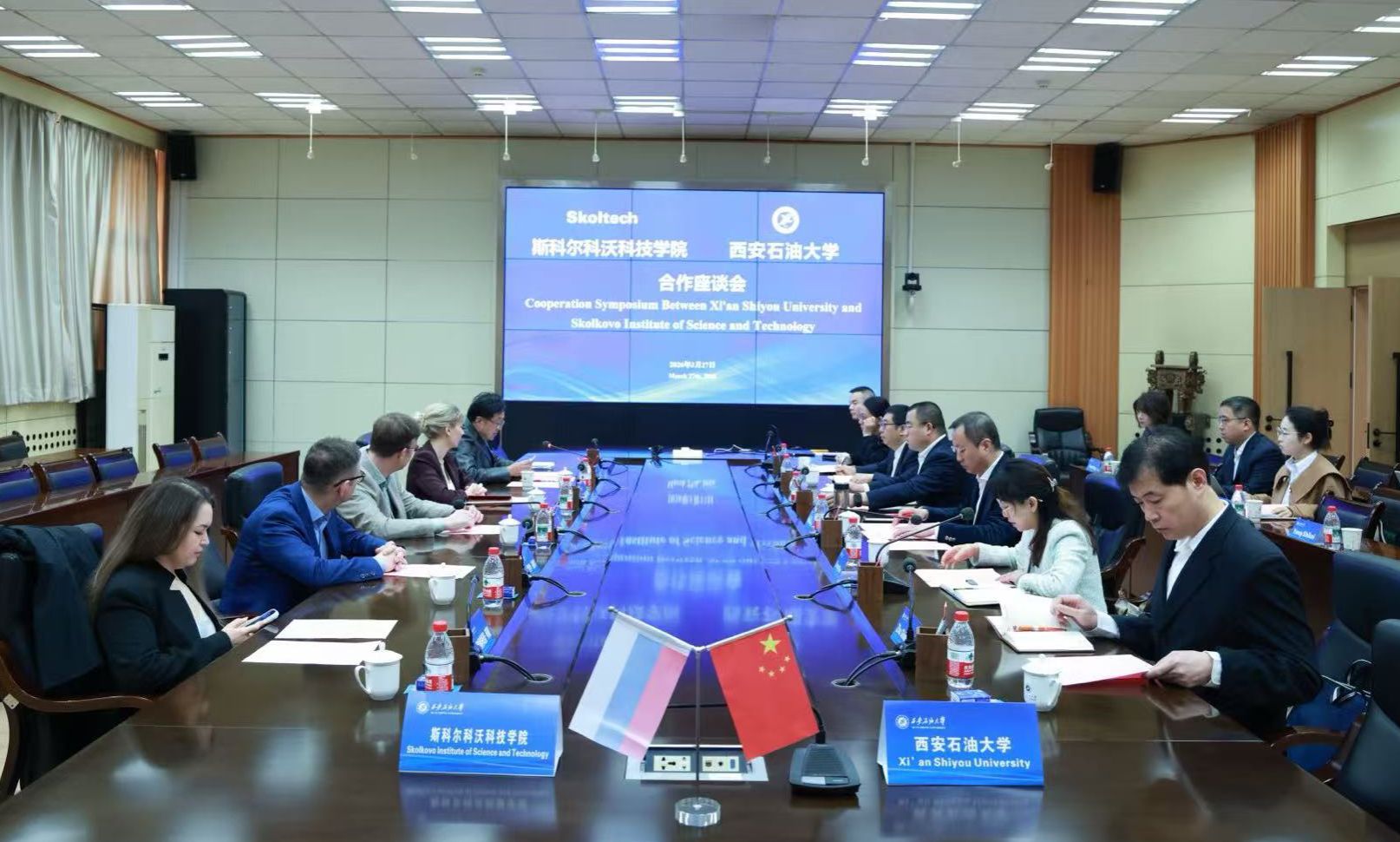 3月27日上午,俄罗斯斯科尔科沃科技学院代表、石油科技与工程中心主任切列米辛·阿列克谢教授率团来访我校,双方合作座谈会在雁塔校区会议中心第二会议室举行。校长王进富会见代表团一行,副校长张荣军出席会议,国际合作与交流处、石油工程学院、电子工程学院、材料科学与工程学院、计算机学院负责人及教师代表参加座谈。