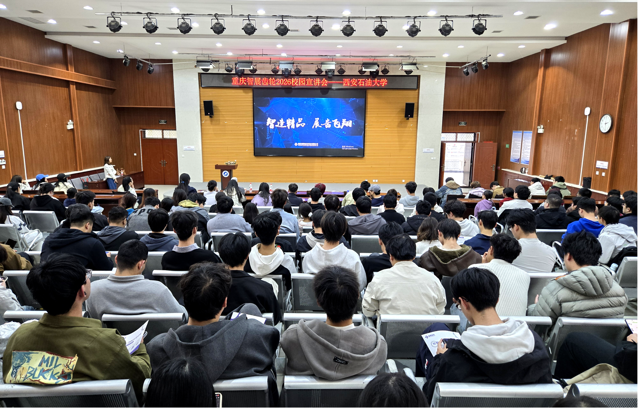 宣讲环节,李建华董事长全面介绍了企业的发展历程、行业地位及核心优势。他表示,重庆智展齿轮传动有限公司是齿轮传动设备领域集研产销服于一体的高新技术企业,在高速重载、非标传动装置研发制造领域居国内领先水平,产品广泛应用于石油、化工、风电等多领域,累计斩获专利100余项,荣获多项省部及国家级科技奖项。孙春花部长围绕招聘岗位、任职要求、薪资待遇与员工福利展开细致讲解,重点推介了工艺、项目管理等方向管培生岗位,深入解读了企业规范化人才培养体系与广阔的职业发展空间。