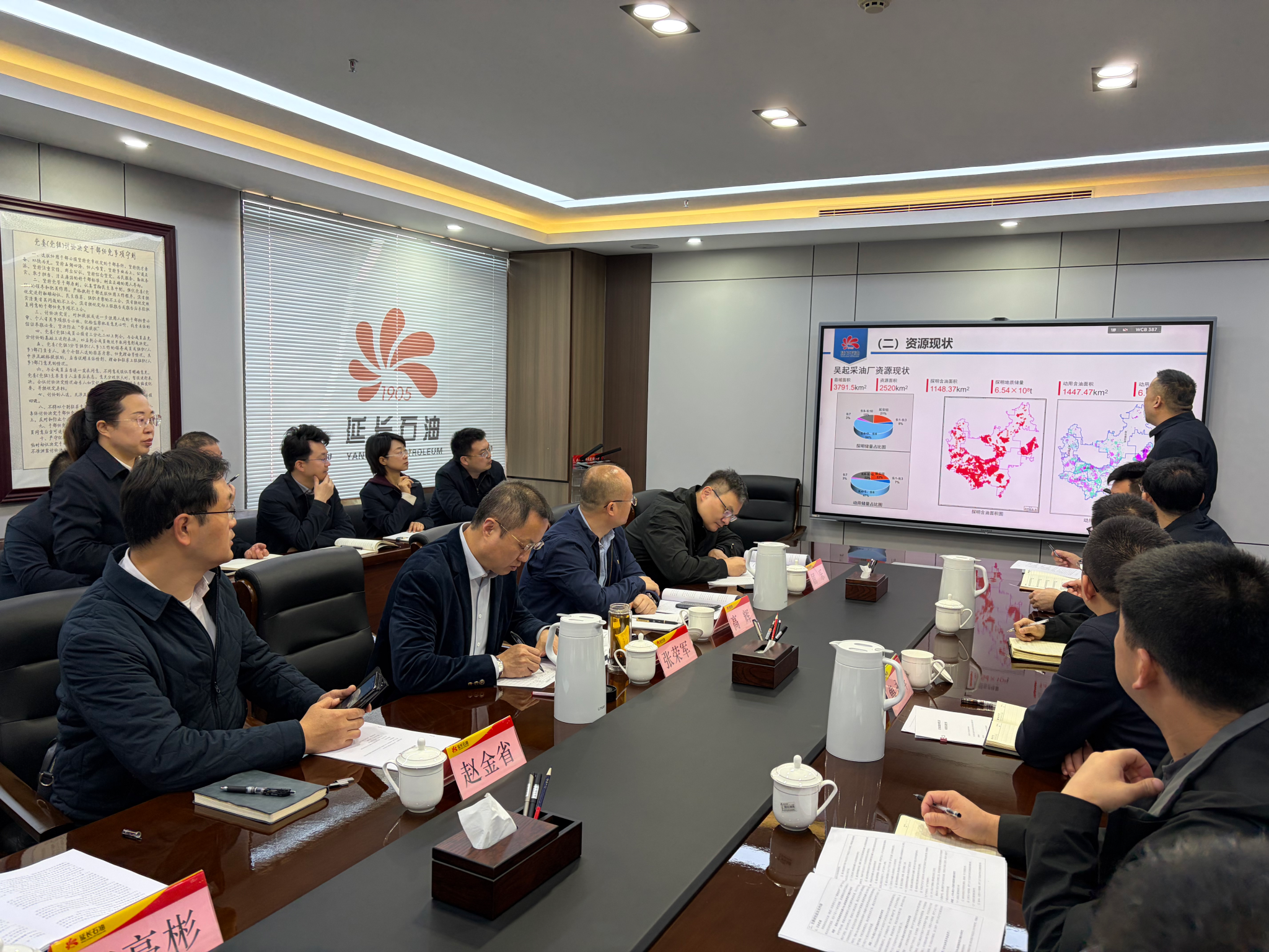 在延长油田富县采油厂,张荣军一行与采油厂厂长张志升、总工程师董满仓、总地质师张恒昌及相关科室技术人员进行座谈。张荣军介绍了学校近年来紧密围绕国家能源战略和行业需求,在碳中和、非常规油气开发、CCUS等领域系统布局学科方向,推动科研范式改革与关键技术攻关的情况。他指出,学校坚持“开放办学、智慧办学、服务办学”理念,主动适配油气田生产实际的技术迭代需求,希望通过此次交流精准对接采油厂现场技术瓶颈,在储层识别、井筒完整性、蓄能补能等方向联合攻关,推动科研成果快速转化。张志升从技术落地、人才共育、党建联建三方面提出深化合作意见,希望聚焦提高采收率、采油工程优化、管网防腐及非常规油藏系统工程等核心领域开展联合攻关。