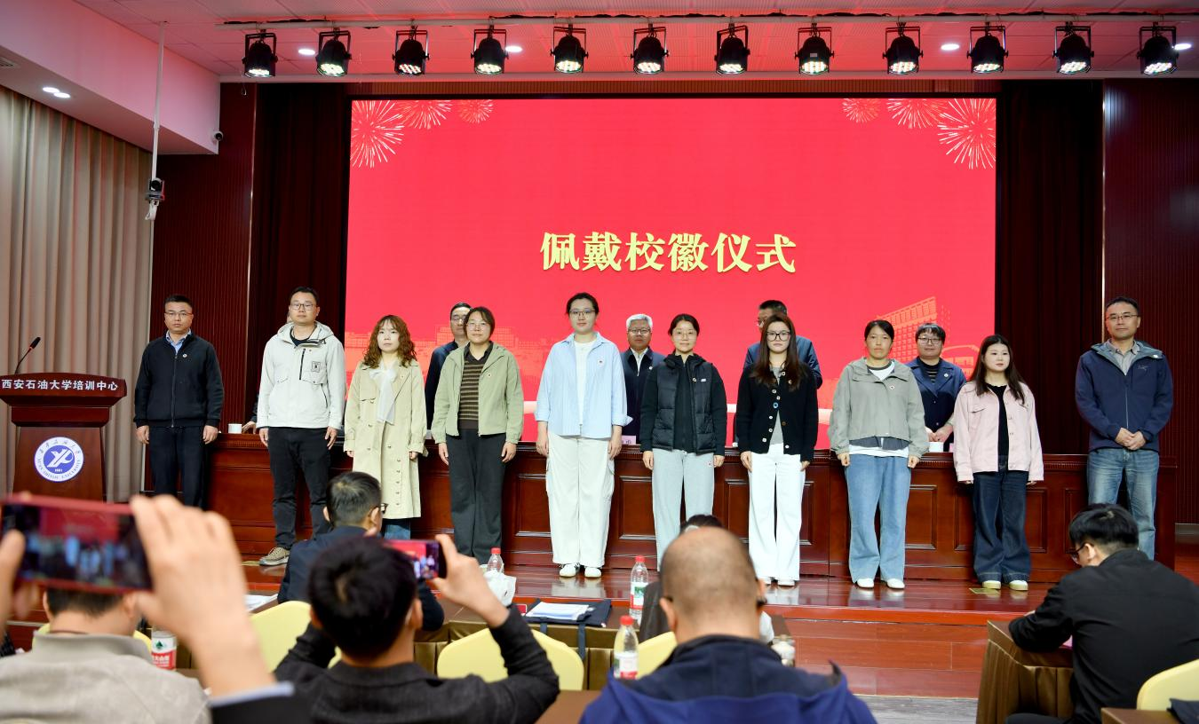 随后,与会领导和嘉宾为新生代表颁发并佩戴校徽。