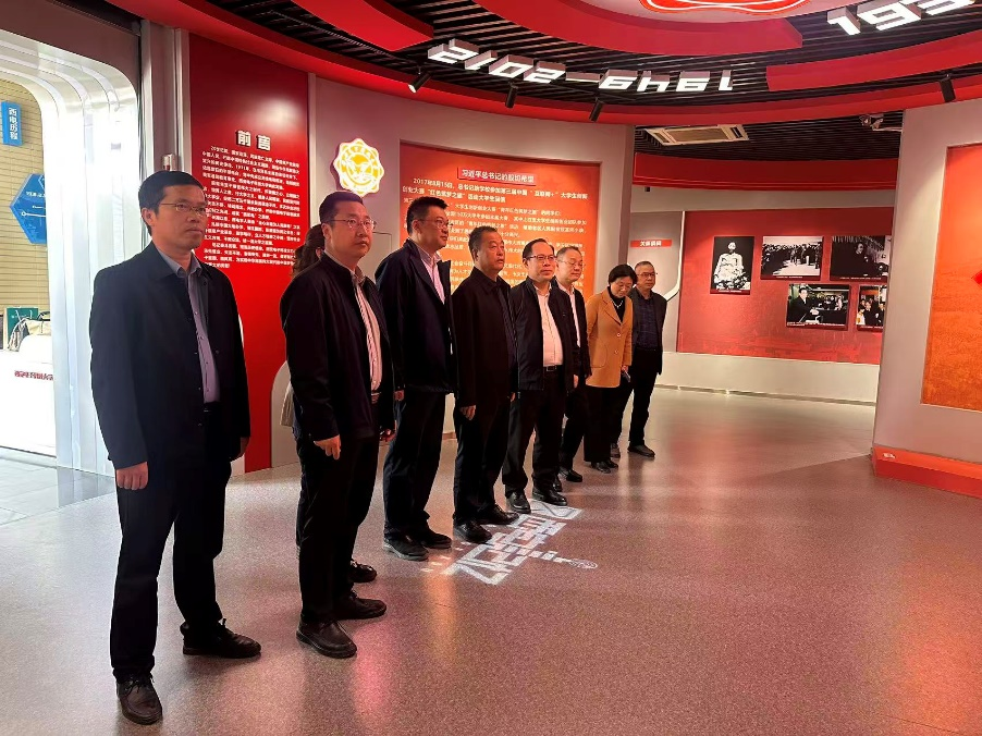 调研团在西安电子科技大学副校长张进成陪同下参观了西安电子科技大学校史馆,依次参观了历史沿革、办学成就、红色传承、人才培养、学科建设等多个主题展区。