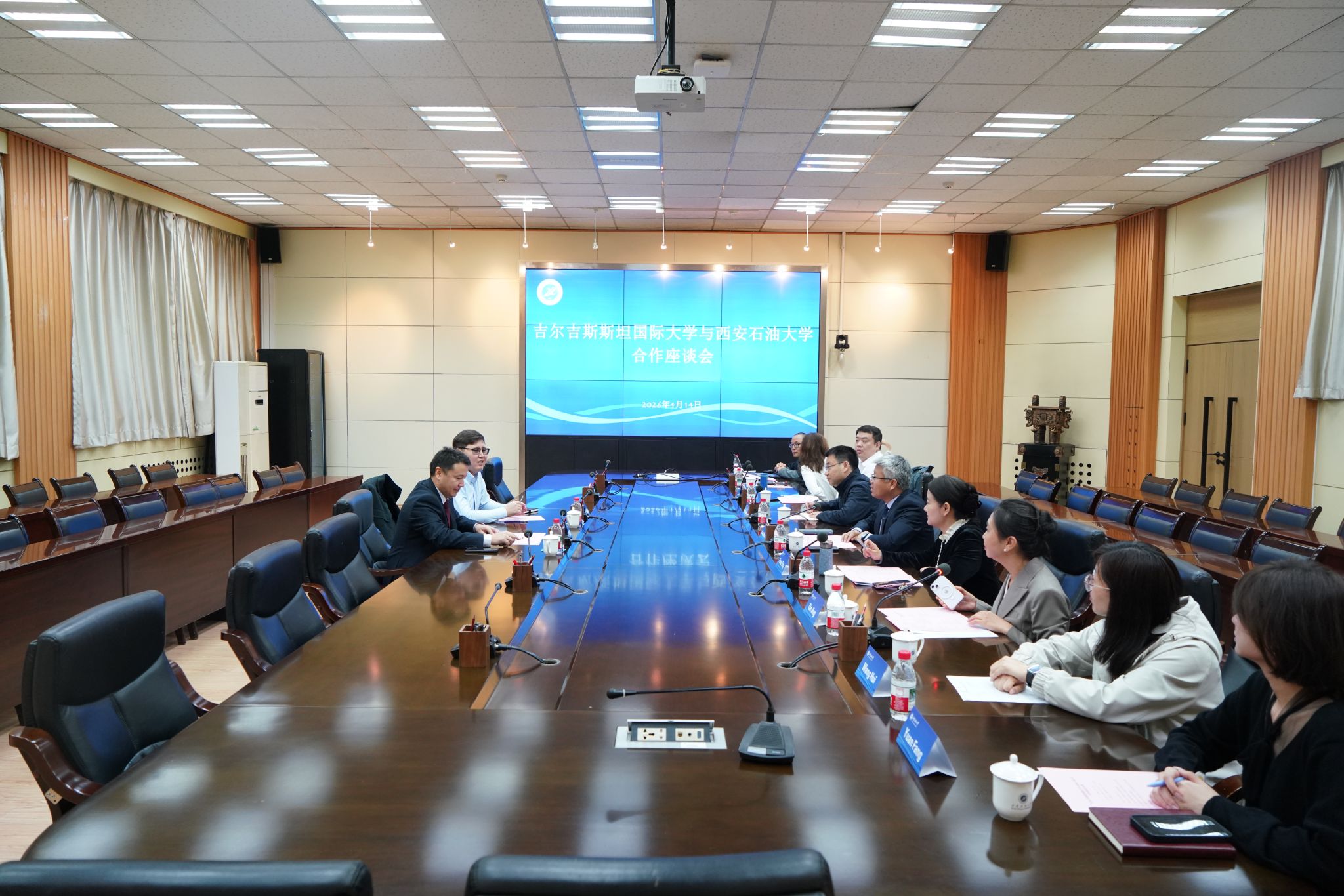 会上,张骁勇简要介绍了学校70余年的办学历史、石油石化特色优势及国际化办学成果。他指出,作为陕西省最早招收吉尔吉斯斯坦留学生的高校之一,西安石油大学在中亚能源人才培养、校企协同育人等方面积累了成熟经验。面对中吉全面战略伙伴关系持续深化的良好机遇,学校愿与吉尔吉斯斯坦国际大学携手,聚焦能源、经济、人文等重点领域,积极推动合作项目落地,构建全方位、多层次、宽领域的校际合作格局。