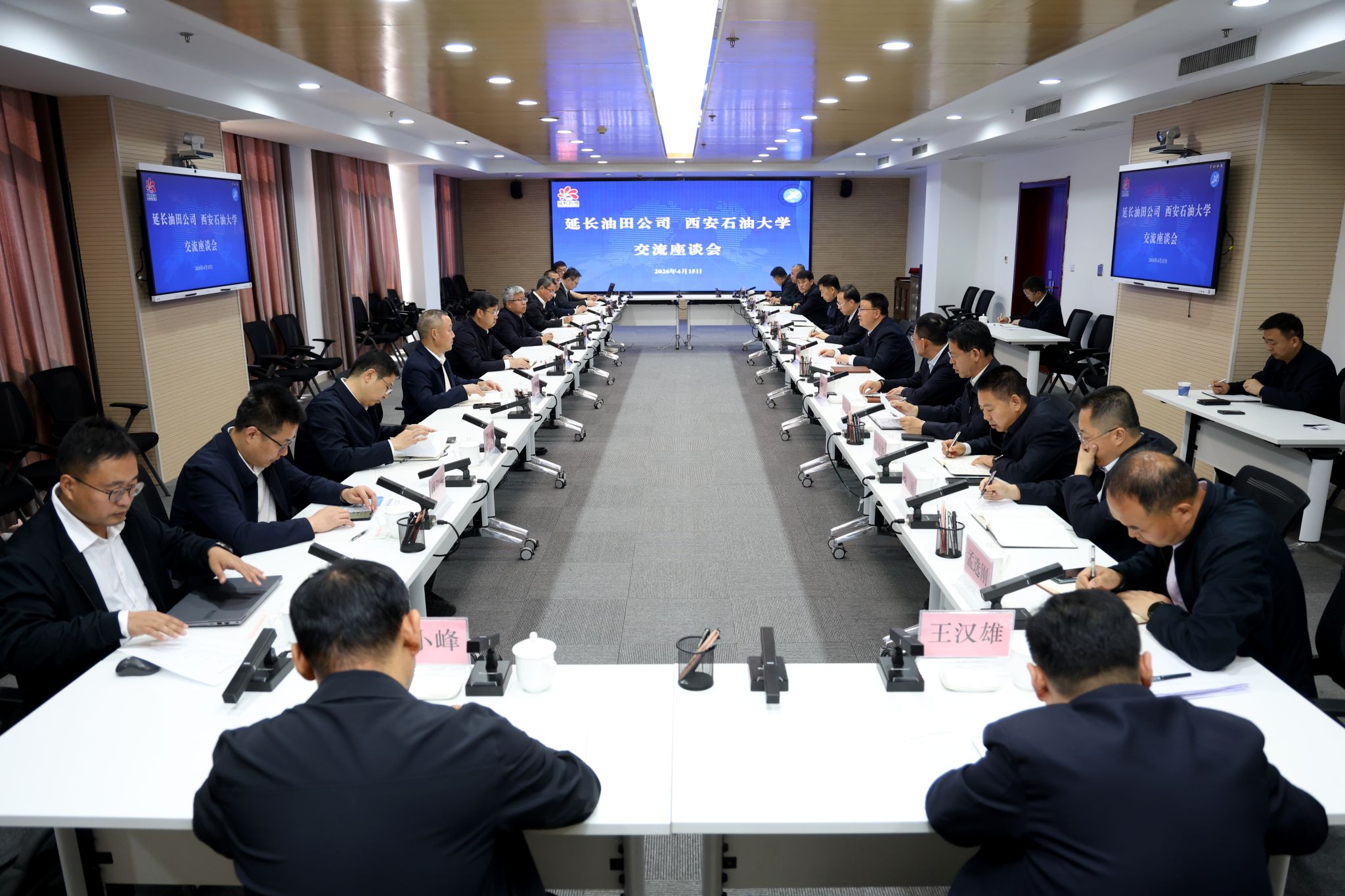 延长油田股份有限公司勘探研发中心、办公室、生产运行部、勘探部、开发部、科技与信息化管理部、分析实验中心、人力资源部负责同志,我校学生工作处、科研处、校友工作与合作交流处、石油工程学院、继续教育学院、边际油气开发技术研究院、智能油气开采研究院等单位负责人参加座谈。