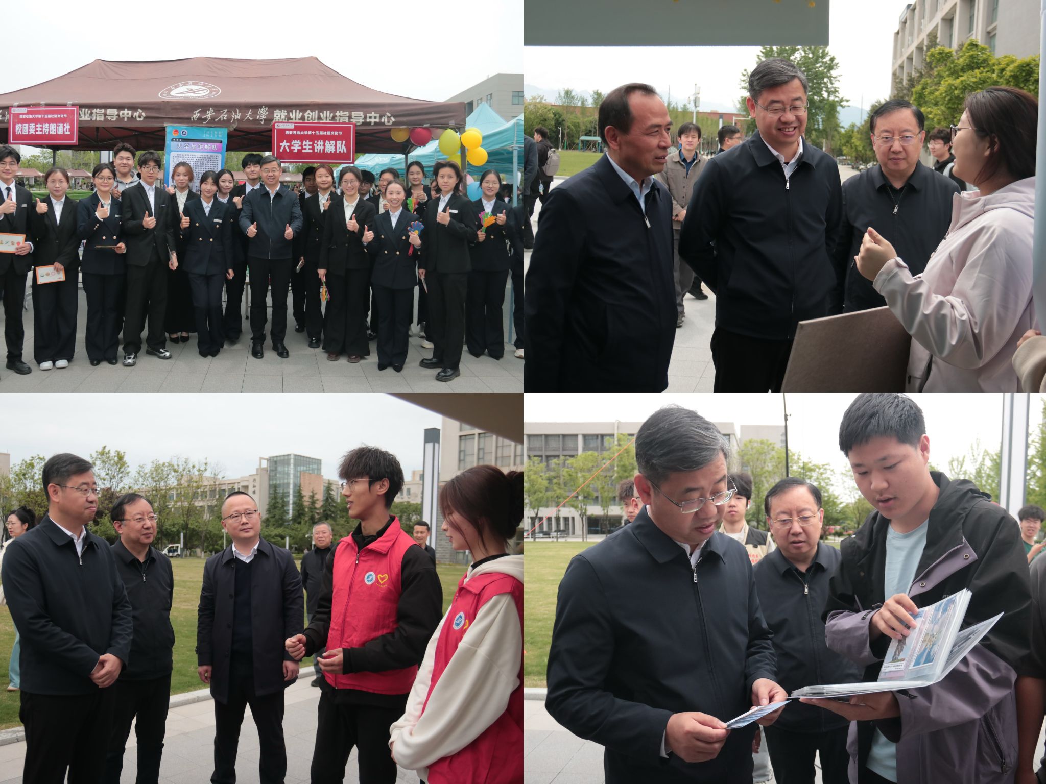 王进富一行观看社团展演,走进社团展台,与现场师生亲切交流,详细了解社团建设、活动开展及育人成效等情况,对本届社团文化节的精心组织和各社团的精彩表现给予充分肯定。他指出,学生社团是校园文化建设的重要载体,是落实立德树人根本任务、促进学生全面发展的重要平台。他强调,各社团要坚守育人初心,强化思想引领,将家国情怀、科学精神、人文素养融入社团建设全过程;要突出特色创新,打破学科专业壁垒,打造更多具有西石大辨识度的品牌社团;要推动社团活动与专业学习、社会实践深度融合,不断提升思想性、学术性、创新性,为学校人才培养质量跃升贡献力量。