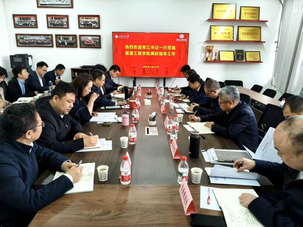 4月24日上午,校党委书记常江带队到管道工程学院围绕学院高质量发展开展专题调研。副校长张骁勇,党委(校长)办公室、组织部、学生工作部、发展规划处、人事处、教务处、实验室管理处等单位负责人陪同调研,管道工程学院领导班子及系主任、工会主席、科级干部、青年教师代表参加座谈。