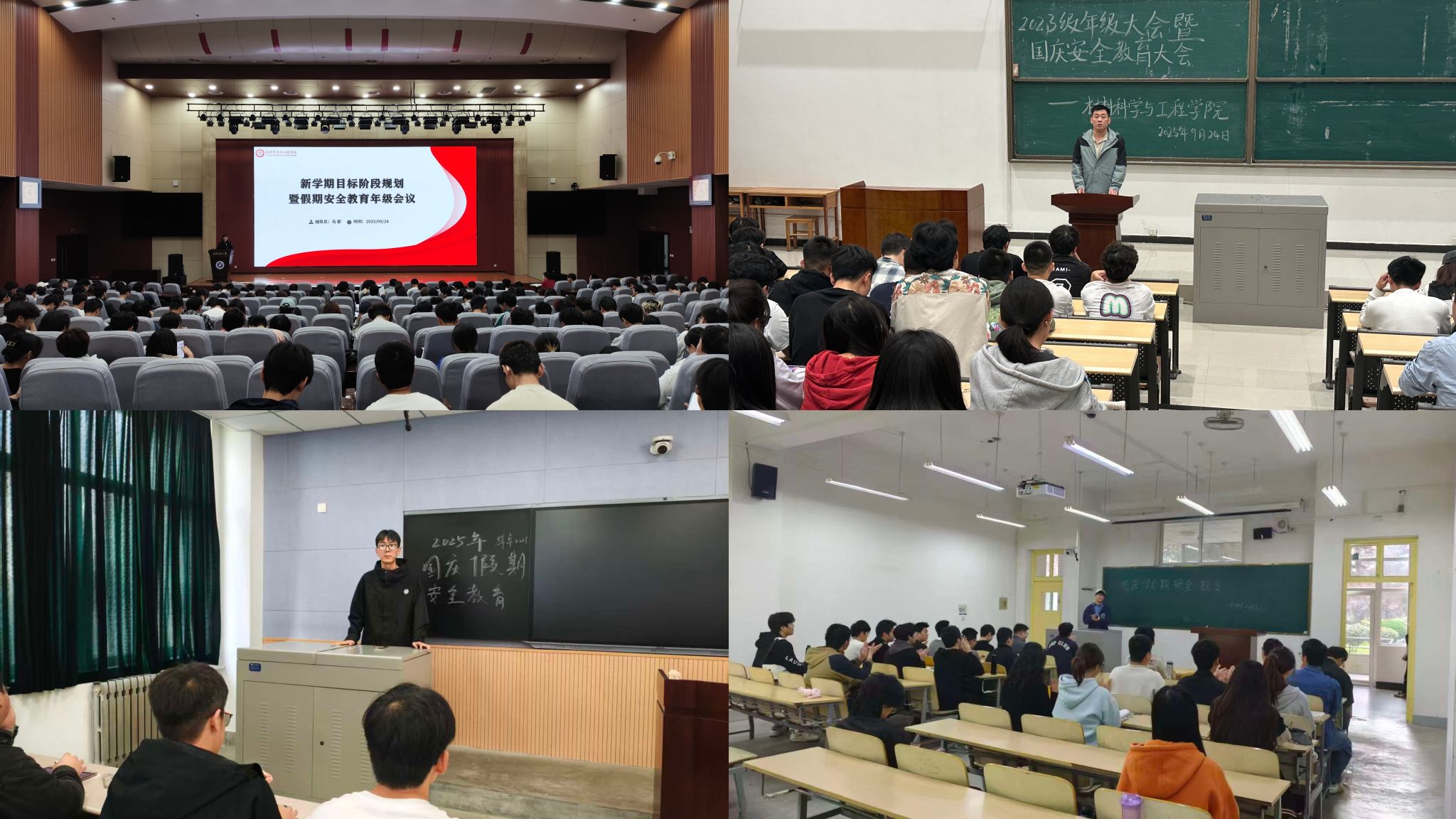 为切实做好中秋国庆假期学生安全教育工作,引导学生度过平安、充实、祥和的假期,9月23日至28日,材料科学与工程学院各年级召开了中秋国庆假期安全教育大会,会议由各年级辅导员主持,全体学生参加会议。