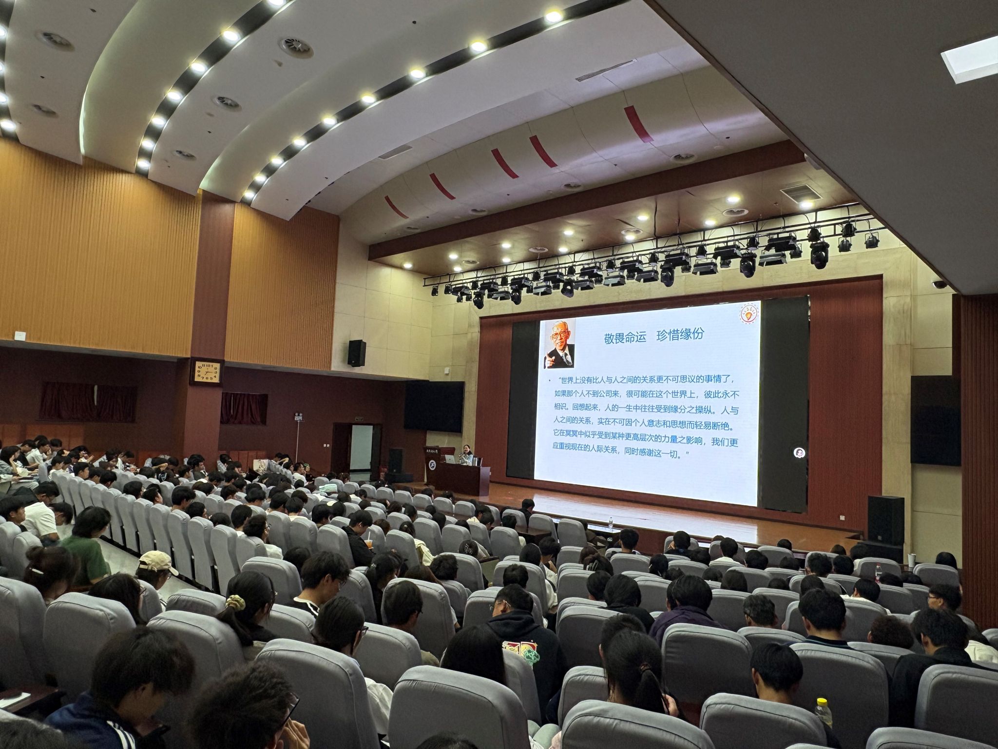 讲座尾声,《相逢是首歌》的旋律缓缓响起,肖琼老师与全体新生共同合唱。温暖的歌声中,满载着对崭新大学生活的期待与向往。本次讲座不仅为新生提供了处理人际关系的实用指南,更在每位同学心中播下了阳光成长的种子,为2025级新生顺利开启大学新征程注入了温暖而坚定的力量。