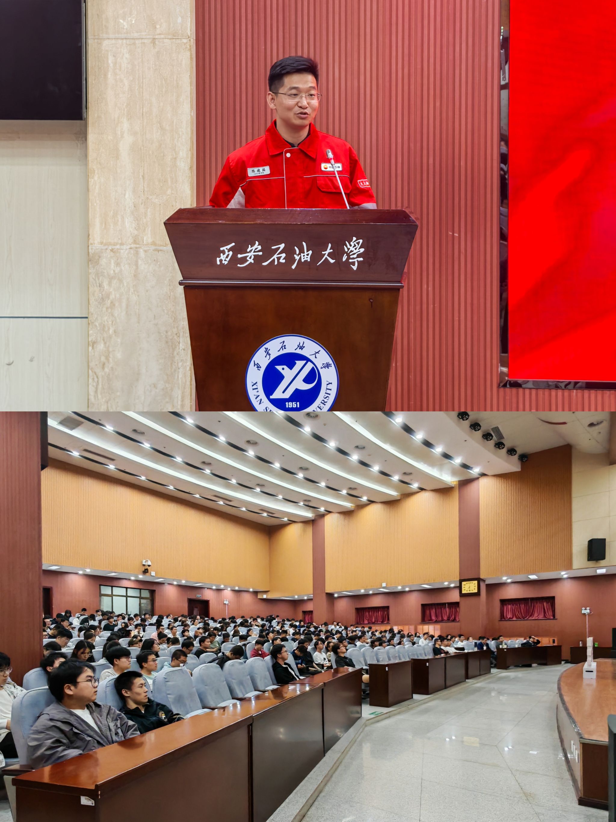 为深化我院与大庆钻探“双子星”钢铁1205、尖刀1202钻井队党建共建合作实践,搭建起校企协同育人新平台,让学生深刻感悟“石油精神办学、铁人精神育人”的深厚内涵, 9月26日,时值大庆油田发现60周年,中国石油成立75周年之际,我院特邀请大庆钻探工程有限公司钻井二公司1202钻井队队长陈建国为我校师生作“踏着铁人脚步走 我为祖国献石油”精彩报告,并聘任陈建国为石工(卓越)2501班企业兼职班主任。副校长赵健,党委办公室(校长办公室)、石油工程学院负责人出席聘任仪式。