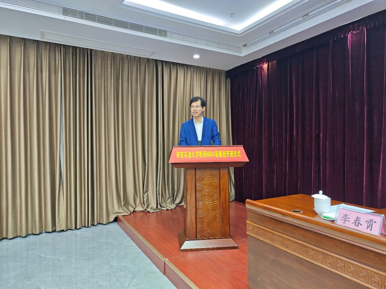 李春霄代表学院全体MBA授课老师,向加入西安石油大学经济管理学院大家庭的新同学,表示最诚挚的祝贺和最热烈的欢迎。他希望同学们能将丰富的实践经验、独特的人生阅历进一步升华,通过学习解决同学们真实的管理困惑,通过教学相长,碰撞出思想的火花。为此,全体教师将秉承“立德树人、执行合一”的理念,做好同学们求学路上的“引路人”与“同行者”。