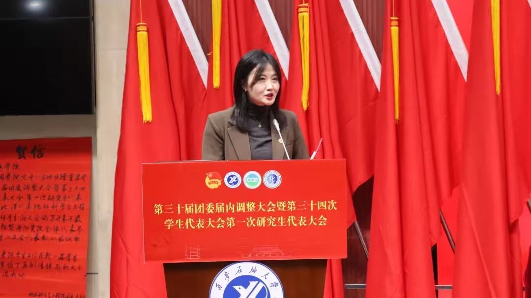 10月24日,西安石油大学化学化工学院第三十届团委届内调整大会暨第三十四次学生代表大会第一次研究生代表大会在鄠邑校区弘石学术报告厅隆重举行。化学化工学院党委书记孙会珠出席大会并讲话,校团委副书记王军策出席会议并宣读批复,化学化工学院党委副书记乔晓、团委书记秦岭、各年级团总支书记、各兄弟院系研究生会代表、各兄弟院系学生会代表以及我院本科生及研究生代表共计250余人参加本次会议。