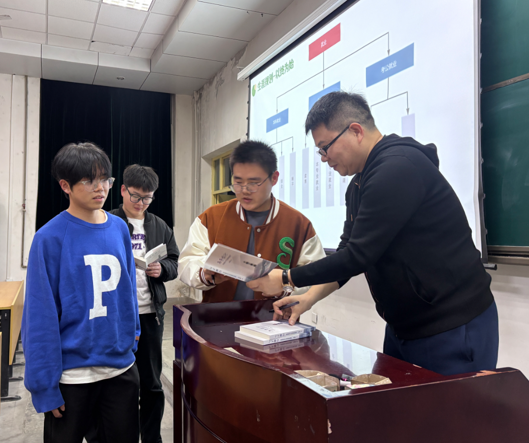 大会尾声的赠书环节别具意义。学院特备五本蔡乾锋签名的个人作品《与子偕行》,以抽奖方式赠送五位参会学生。