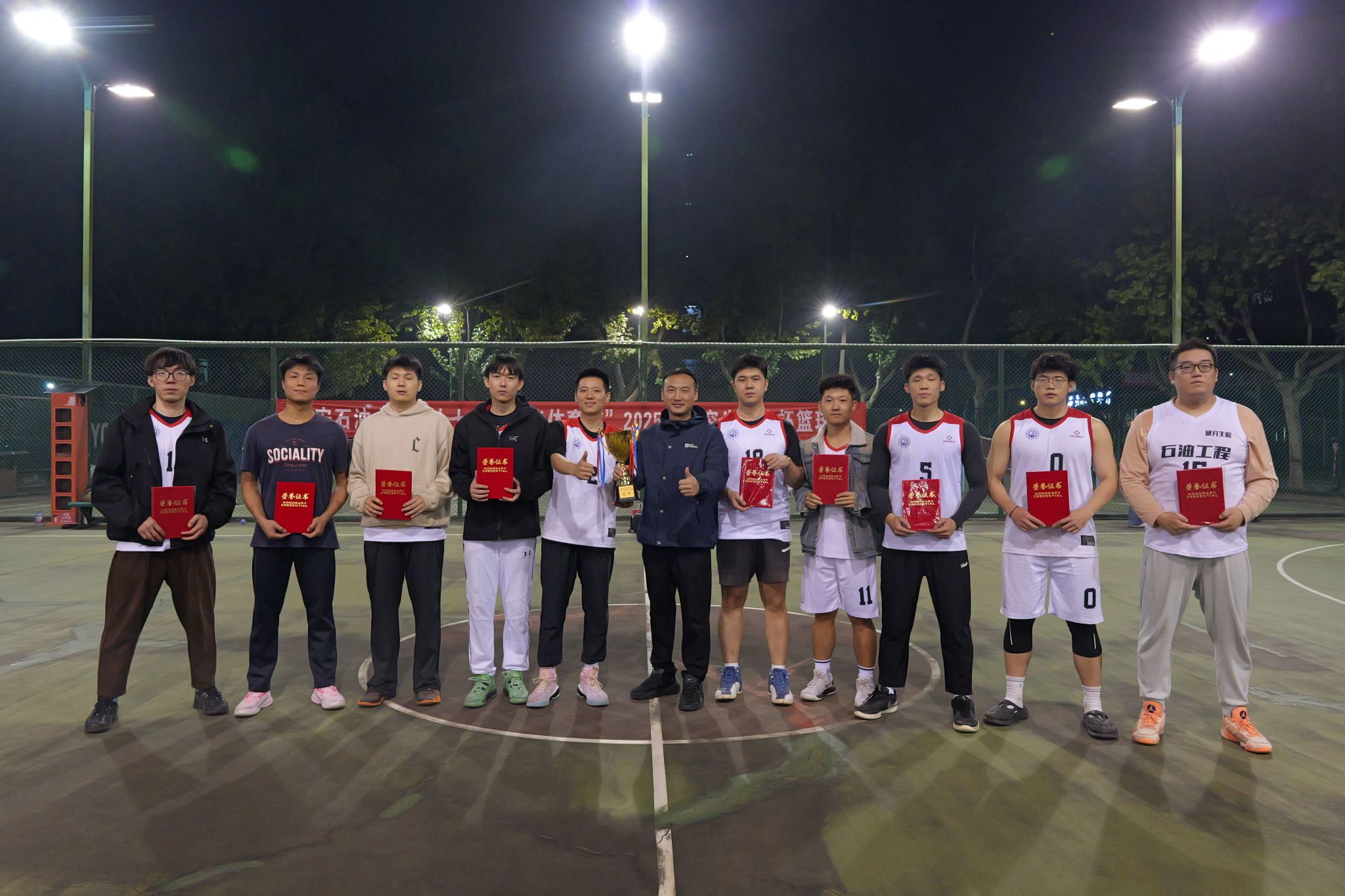 10月28日,由西安石油大学研究生工作部主办的2025年研究生“新生杯”篮球赛圆满落幕。学院研究生新生代表队凭借顽强的拼搏精神、默契的团队协作与出色的战术执行,一路过关斩将,最终在决赛中力克劲敌,成功斩获本届赛事冠军,为学院赢得了荣誉。
