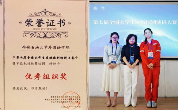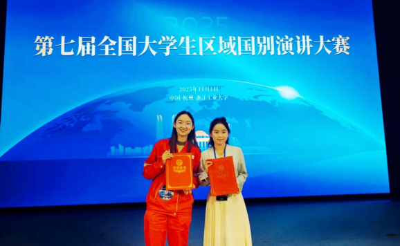 11月1日,第七届全国大学生区域国别演讲大赛在杭州落下帷幕。马克思主义学院24级研究生陆雨萌和石油工程学院23级本科生施澜两位同学在外国语学院教师张磊指导下,经过初赛、复赛和决赛层层选拔和考验,斩获全国总决赛三等奖,取得我校学子在该项竞赛中的历史性突破。外国语学院凭借出色的组织能力,获得优秀组织奖。