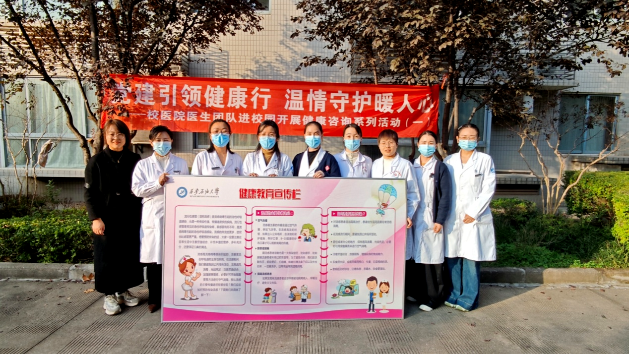 为切实满足广大师生及离退休职工健康需求,提升健康意识与自我防护能力,校医院以党建为引领,于11月11日、11月13日分别在雁塔校区、鄠邑校区精心开展“党建引领健康行 健康关怀暖人心”系列健康咨询活动。作为西安石油大学落实“我为群众办实事”实践活动的重要举措,活动将优质医疗资源与健康服务送到师生“家门口”,累计服务350余人次,完成血糖检测150余人次、血压检测120余人次,以专业高效的服务筑牢校园健康安全防线,赢得师生广泛赞誉。