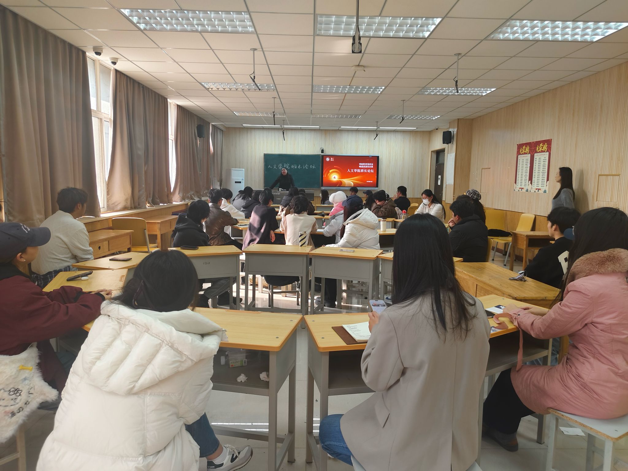 为进一步强化学生骨干责任意识,构建高效协同的师生沟通机制,锤炼具备“四实一新”特质的班级管理核心力量,人文学院于12月1日在崇文楼233教室顺利举办班长论坛。本次论坛以“明晰职责强担当 畅通渠道促发展”为主题,汇聚各年级班长、辅导员与班主任代表,通过经验共享、问题剖析与策略共创,致力于提升班级治理效能。