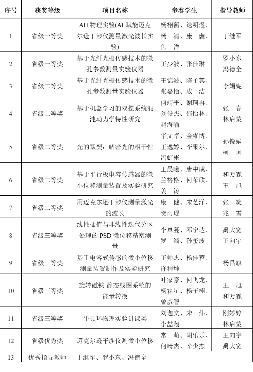 此次竞赛佳绩,是我院近年来坚持“以赛促学、以赛促教、赛教融合”培养模式的重大成功实践。下一步,理学院物理实验中心将总结参赛经验,继续深入推进物理实验教学改革,为拔尖创新人才的培养提供了有力支撑。
