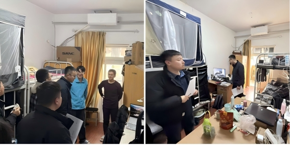 排查过程中,辅导员老师们秉承认真负责的态度,逐一走访学生寝室。他们仔细查看宿舍内是否存在违规使用大功率电器、私拉乱接电线、电器使用后未及时断电等安全隐患;提醒同学们保持寝室整理,及时清理杂物,避免在宿舍内堆放易燃物品。同时,检查人员还与同学们进行了面对面交流,了解研究生科研学习情况、生活中存在的问题与困难等,并在现场开展消防安全知识宣传与教育,强调冬季用电用火安全的重要性,叮嘱研究生牢固树立“安全第一,预防为主”的思想,自觉遵守宿舍管理规定,共同维护安全和谐的住宿环境。