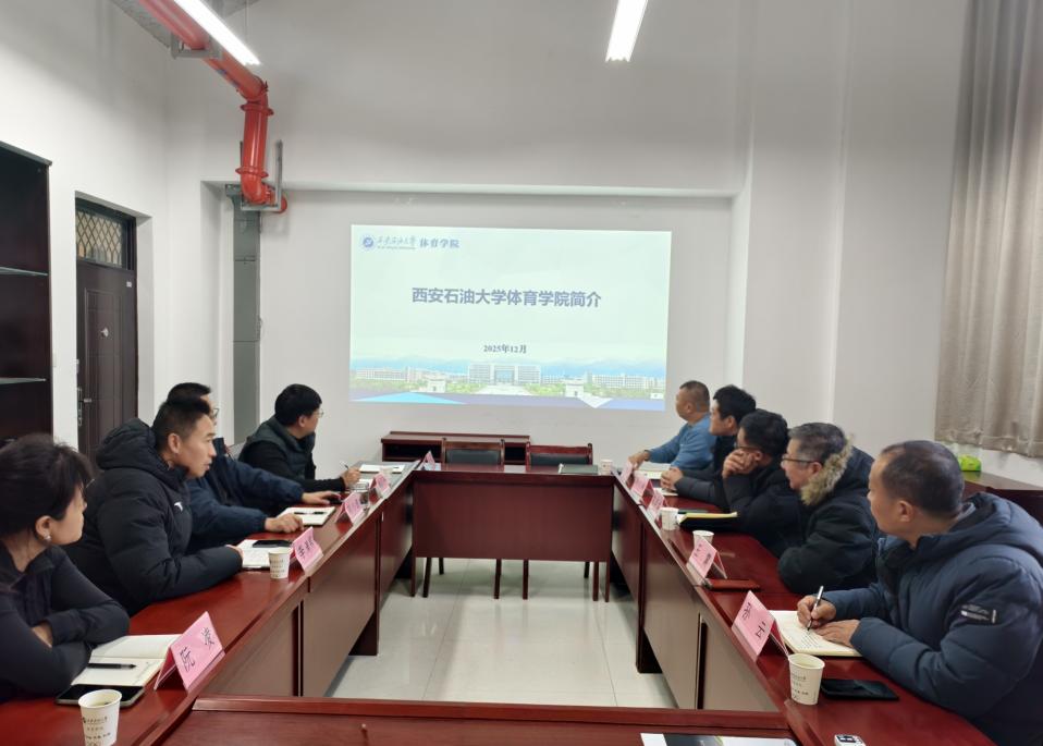 科研工作交流中,双方聚焦于体育学科如何服务社会与行业需求。我校体育学院依托石油石化行业背景,开展全民健身设施需求调查,组织学生通过校企平台提供社区健身服务,推动科研与实践结合;学院还积极参与陕西省科技厅项目申报,鼓励教师参与体育科学大会等学术平台,提升科研视野。陕西科技大学体育部则分享了其教师团队在第十四届全运会执裁、体育赛事组织中的经验,以及通过“请进来+走出去”模式,强化产学研融合的案例。双方认为,体育科研应紧扣国家战略,如运动处方开发、人工智能赋能体育训练、体育资源数字化管理等前沿方向,同时注重将成果转化为公共服务能力,例如为社区提供健康指导、为地方体育政策提供咨询。