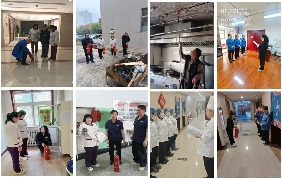 坚持日常排查,守好安全阵地。学院(培训中心)高度重视冬季校园安全工作,每周组织第三方聚焦学员高频活动区域进行安全检查,对天然气阀门、锅炉房、电梯、电路安全、食品加工规范及消防设施等安全关键环节进行专项排查,对员工安全意识和应急处置能力进行日常培训。定期对各区域灭火器等消防设施进行检查,对即将过期的灭火器联系保卫处进行维护,本学期更换和维修了204个灭火器。