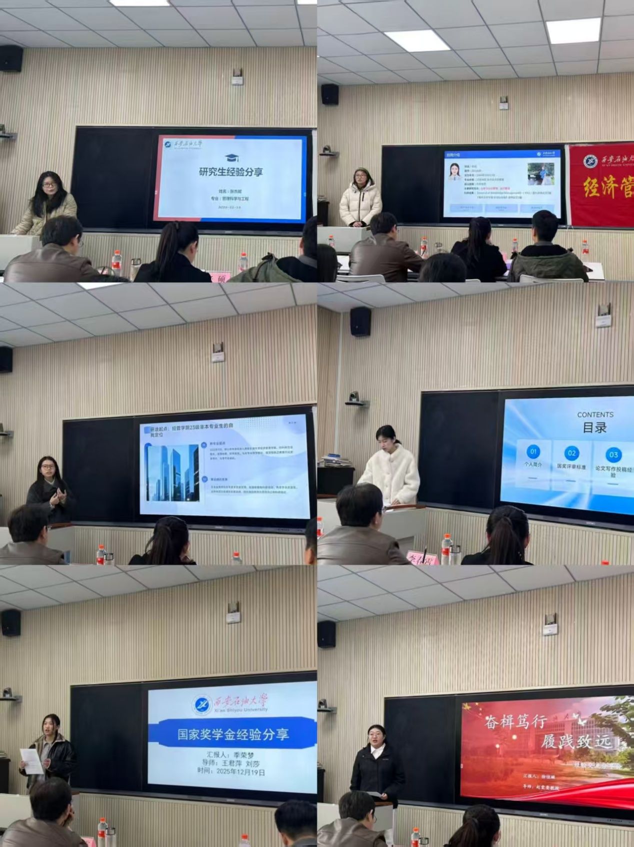 为深入推进研究生学风建设,深植求真务实、守正创新的学术基因,切实响应学校研究生学风建设暨学术文化月系列活动的号召。12月19日下午,经济管理学院研究生国家奖学金获得者经验分享会在鄠邑校区博览楼A115教室顺利举行。经济管理学院学院副院长李春霄,学生工作办公室副主任张硕,研究生辅导员及研究生代表参会。