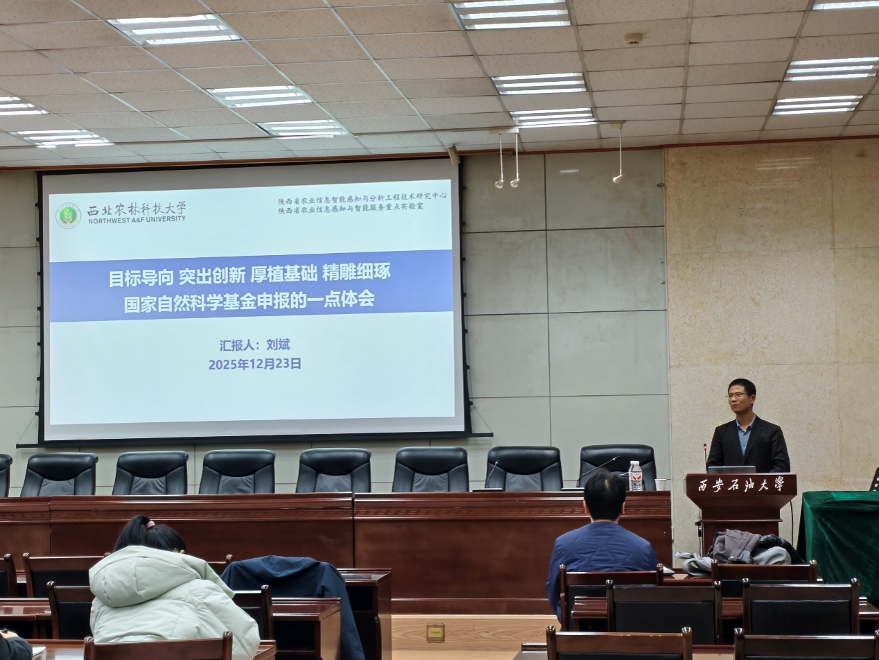 为扎实推进2026年度国家自然科学基金项目申报筹备工作,进一步提高项目申报书质量与教师申报竞争力,12月23日,计算机学院成功举办国家自然科学基金项目学术报告会暨申报经验交流座谈会。会议特邀西北农林科技大学教授、博士生导师、陕西省“三秦英才特殊支持计划”区域发展人才、陕西省中青年科技创新领军人才、秦创原“科学家+工程师”队伍建设首席科学家、中国计算机学会西安秘书长刘斌作专题辅导报告。会议由计算机学院副院长张留美主持,学院新进青年博士教师、拟申报2026年国家自然科学基金项目的教师参加会议。