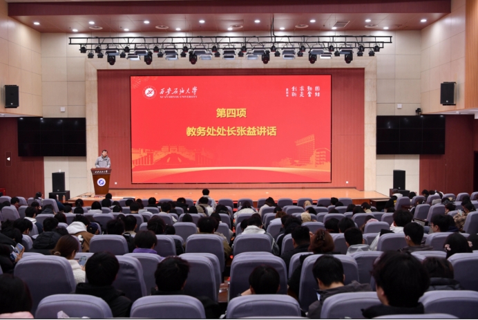 12月29日上午,“我为西石大代言”母校行2025年表彰暨2026年活动启动仪式在鄠邑校区弘石学术报告厅举行。教务处、校团委单位负责人、学生代表等共260余人参加了仪式。