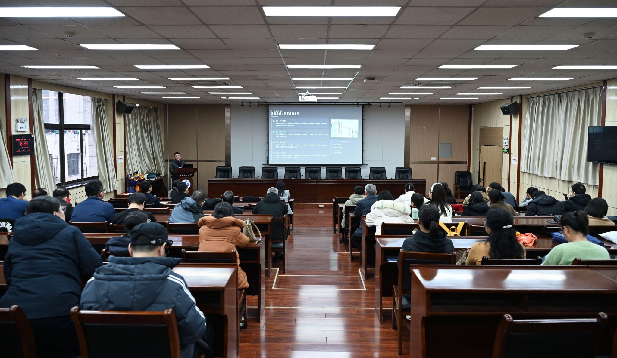 严正国教授团队分享了油气井下可视化检测技术的转化实践,提出科研成果转化是一场多方协同的“接力赛”,并围绕技术演进与产学研生态构建为全院教师作了系统讲授。