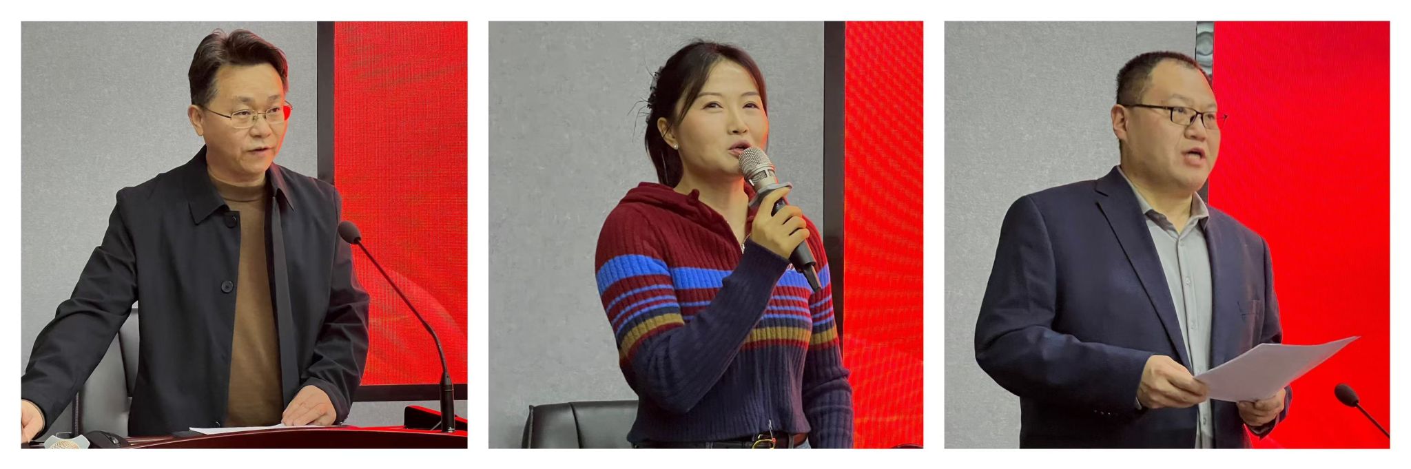 大会第四项为2025年新进教师的欢迎仪式。新引进的博士教师代表肖佳轩、于旭莹、韩晓琨分别发言。他们表达了自己尽快适应新角色、融入新集体的决心,并表示将自觉传承学院严谨治学、潜心育人的优良传统,握紧立德树人、科学研究的“接力棒”,充分发挥专业特长,积极投身学院的内涵建设与高质量发展,为学校建设高水平教学研究型大学的奋斗目标贡献智慧与力量。