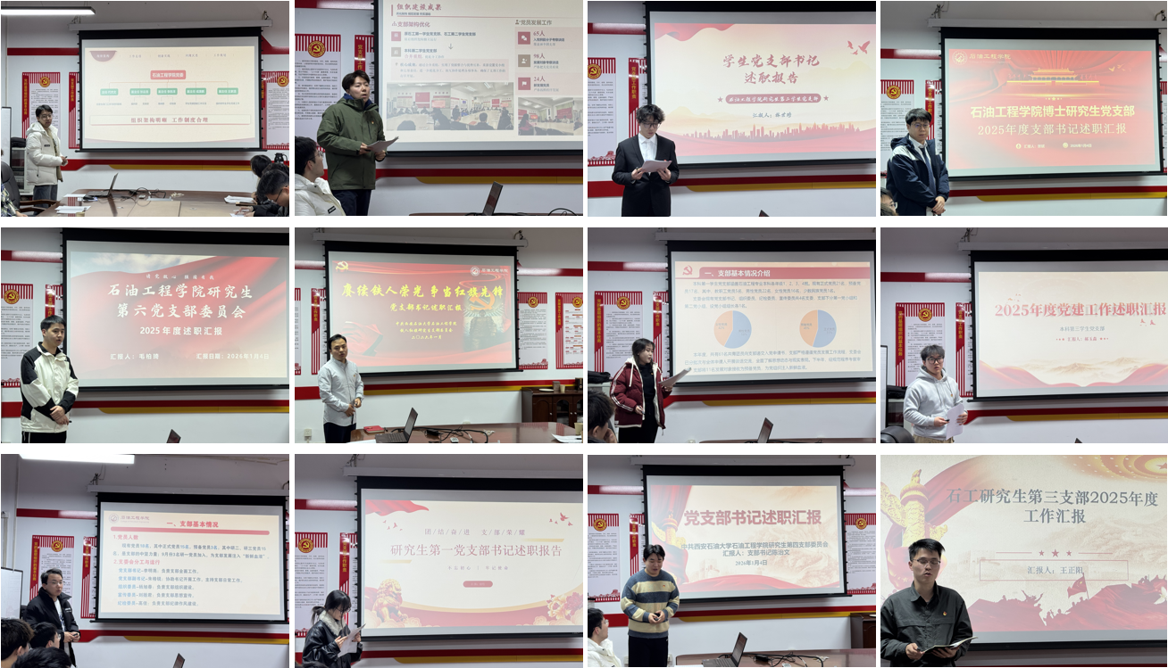 1月4日下午,石油工程学院在雁塔校区一教603会议室召开2025年度石油工程学院学生党支部书记抓党建述职评议会议。石油工程学院党委副书记艾二鑫、专职组织员宋兴淼、辅导员余靓豪、学院学生党建办公室主任及学院全体学生党支部书记参会。