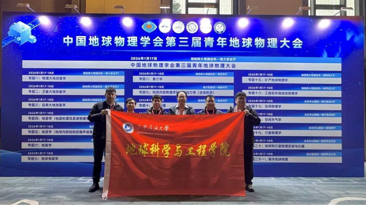 2026年1月16日至19日,第三届青年地球物理大会在安徽合肥隆重举行,本届大会吸引了来自全球60多家单位的800多名顶尖专家和青年学者参加。我校地球科学与工程学副院长院曹静杰教授带领7位青年教师集体参加了本次大会。曹静杰教授作为专题召集人组织了第十六专题,应用地球物理系青年教师冯旭亮、李萌、杨飞龙、李欣欣、鲁恺、杨文强,分别在地球电磁学、重力学、地磁学、工程和环境地球物理学、油气测井与储层评价、地震波场成像方法及技术、储层识别与参数反演等专题作学术报告7场,展现了我校地球物理领域青年教师在相关领域的科研进展与风采。
